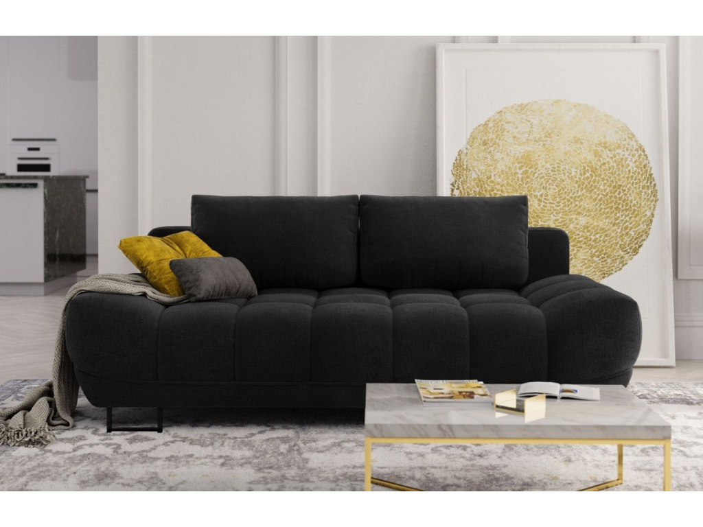 Vkusná třímístná rozkládací pohovka Cirrus zaujme svou elegancí a praktičností. Čalounění z kvalitní, prošívané, strukturované sametové látky, dodá vašemu obývacímu pokoji styl a příjemnou, útulnou atmosféru. Hřejivý materiál, příjemný na dotek, poskytne maximální komfort celé rodině. Osobitost pohovce dodává černě lakovaná kovová podnož. Pohovka je rozkládací, a tak se stane nejen designovým prvkem obývacího pokoje, ale také praktickou přistýlkou pro vaše návštěvy. Příjemným bonusem je úložný prostor.