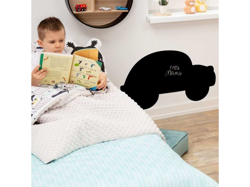 Tabulová samolepka na zeď Car od Yellow Tipi je skvělá alternativa k tradičním tabulím, která poskytne spoustu prostoru na kreslení. Lze po ní psát křídou nebo křídovými fixy. Můžete ji také nalepit například nad psací stůl, kde se z ní stane dokonalé místo na poznámky či příklady. Samolepka ve tvaru autíčka potěší zejména malé raubíře.