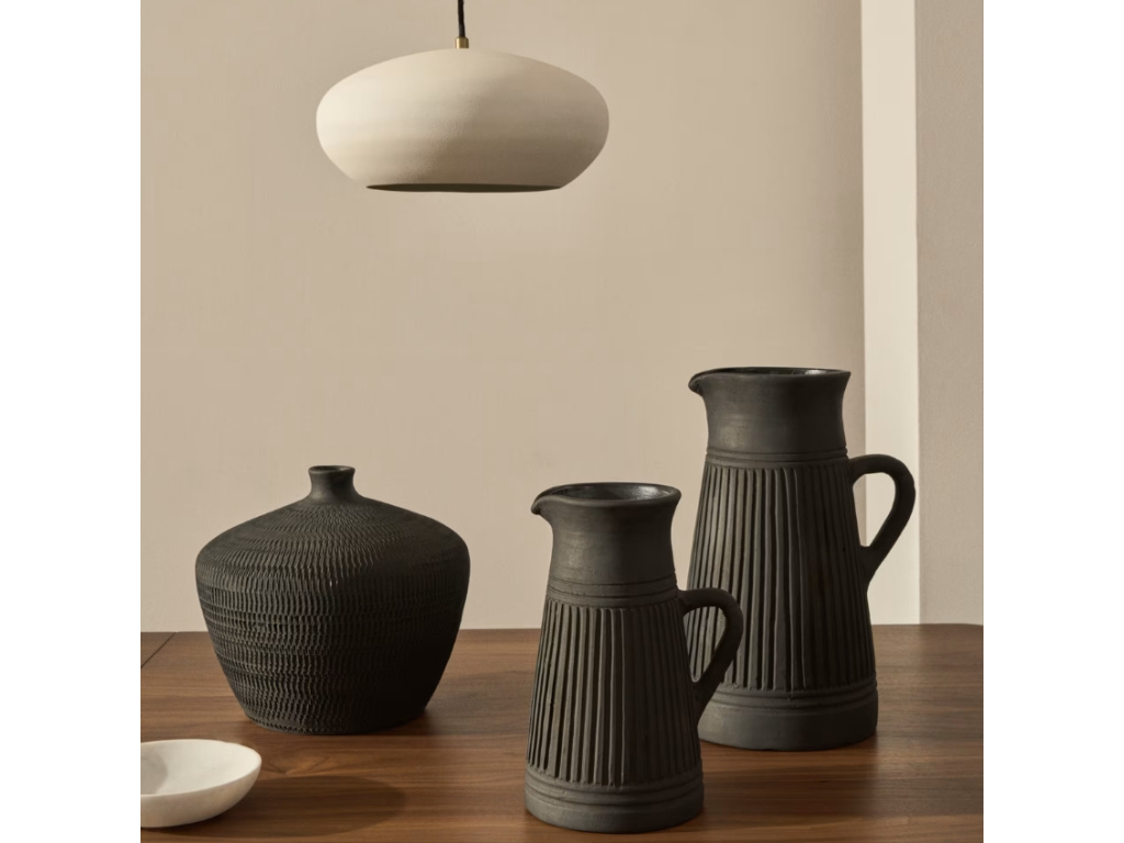 Váza Kave Home Menre má podobu džbánu a je dostupná ve dvou velikostech. Na jejich výrobu byla použita terakota, která svého tmavého odstínu dosáhla díky procesu vypalování. Váza skvěle zapadne do přírodně laděných prostor, slušet jí to bude po boku dalších designovek z kolekce Natural Expression, která se právě na spojení s přírodou zaměřuje. Udělejte si radost sami sobě, nebo ji darujte svým blízkým – radost udělá všem milovníkům designu.