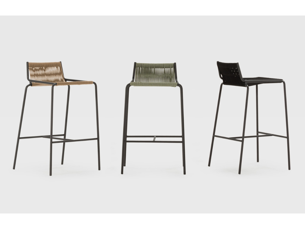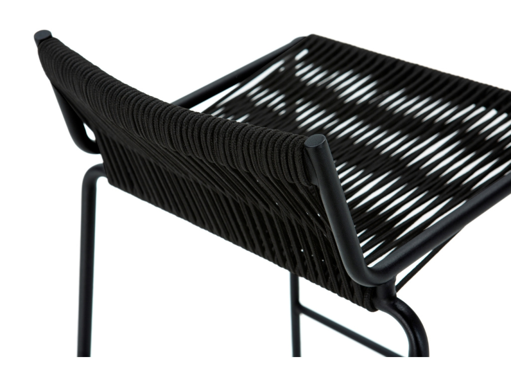 Barová židle Emily v černém provedení působí elegantně, nadčasově a dokonale podtrhne atmosféru na venkovní terasách i v kuchyních. Minimalistická konstrukce z lakovaného kovu doplněná napnutým výpletem zajišťuje pohodlí i vizuální lehkost, a velice snadno se kombinuje s ostatním nábytkem. Tento model je nabízen rovněž jako jídelní židle.
