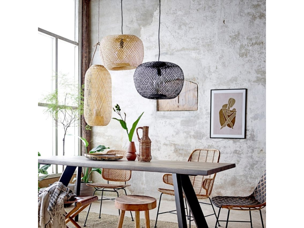Závěsné světlo Rodi značky Bloomingville má stínidlo vyrobené z černě zbarveného bambusu. Skvěle zapadne do interiérů laděných v přírodním stylu. Stínidlo je perforované, takže po jeho rozsvícení světlo do prostoru snadněji pronikne a navodí hřejivou atmosféru. Rodi je dostupné také v přírodní barvě.