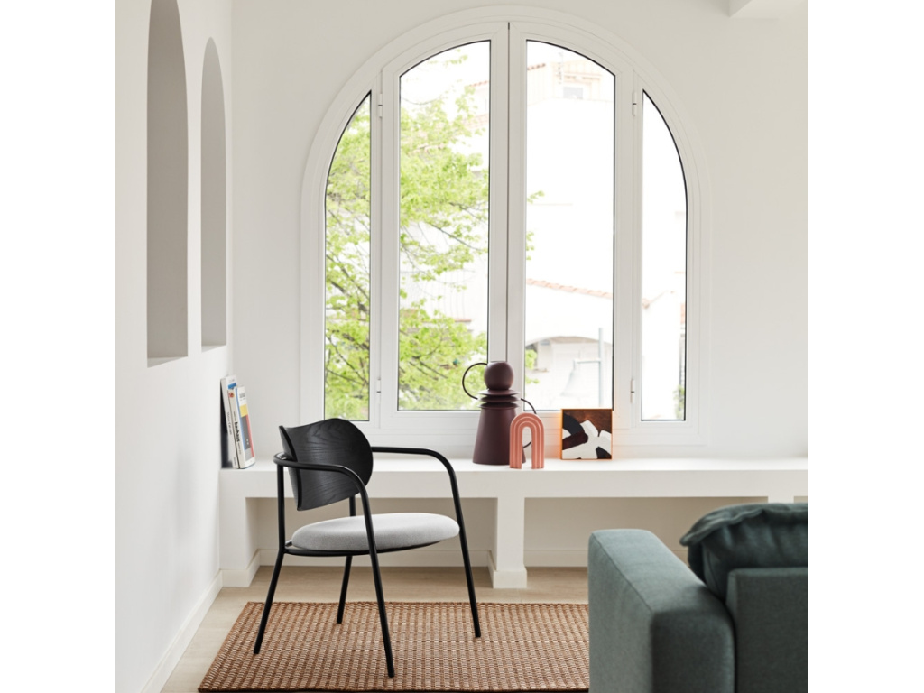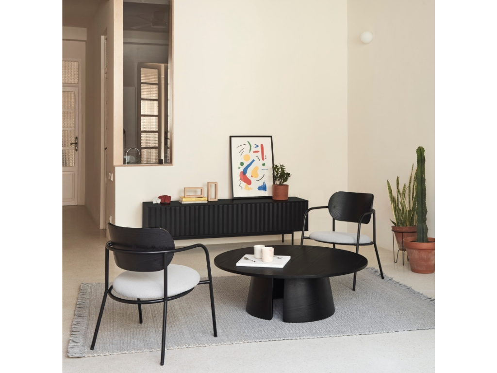 Stylové lounge křeslo Eclipse od značky Teulat nachází inspiraci v klasických designech kombinujících kovové a dřevěné prvky, které tvoří přímo ikonický vzhled. Příjemnou látkou čalouněný sedák a černé opěradlo s dřevěným dekorem jsou tvarované s ohledem na pohodlí během dlouhého sezení. Jde o elegantní a všestranný design, který krásně splyne s okolím ať už v koutku obývacího pokoje, kolem jídelního či zasedacího stolu v kanceláři nebo umístěný v hotelové hale.