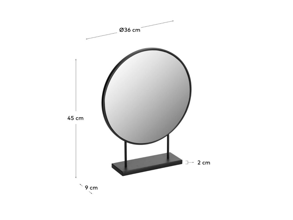 Stolní kosmetické zrcadlo Kave Home Libia bude praktickým i stylovým doplňkem vašeho interiéru. Rám zrcadla je tvořen černě lakovaným kovem a zrcadlo je usazené na lakované MDF základně. Nemusí být používáno jen na toaletním stolku, bude krásným doplňkem také v chodbě, předsíni nebo na komodě v ložnici.
