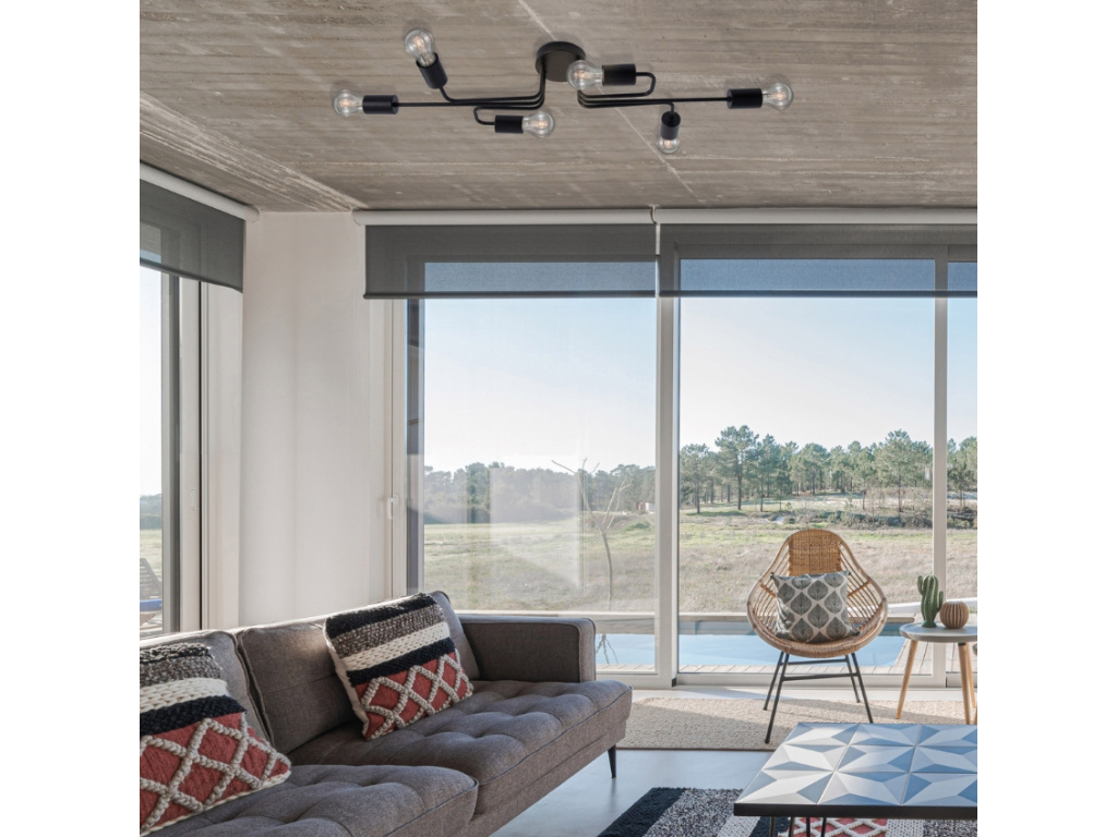 Stropní svítidlo Granso od značky Nova Luce dodá vašemu prostoru ten správný industriální nádech! Na první pohled vás zaujme členité zavěšení, s nápaditě rozmístěnými žárovkami. To je vyrobeno z lakovaného kovu v černé barvě, která umocňuje celkový design světla. Hravý tvar světla můžete doladit dekorativními či klasickými žárovkami, jenž světlu dodají jedinečný charakter. Světlo Granso skvěle vynikne v moderních i industriálních interiérech.