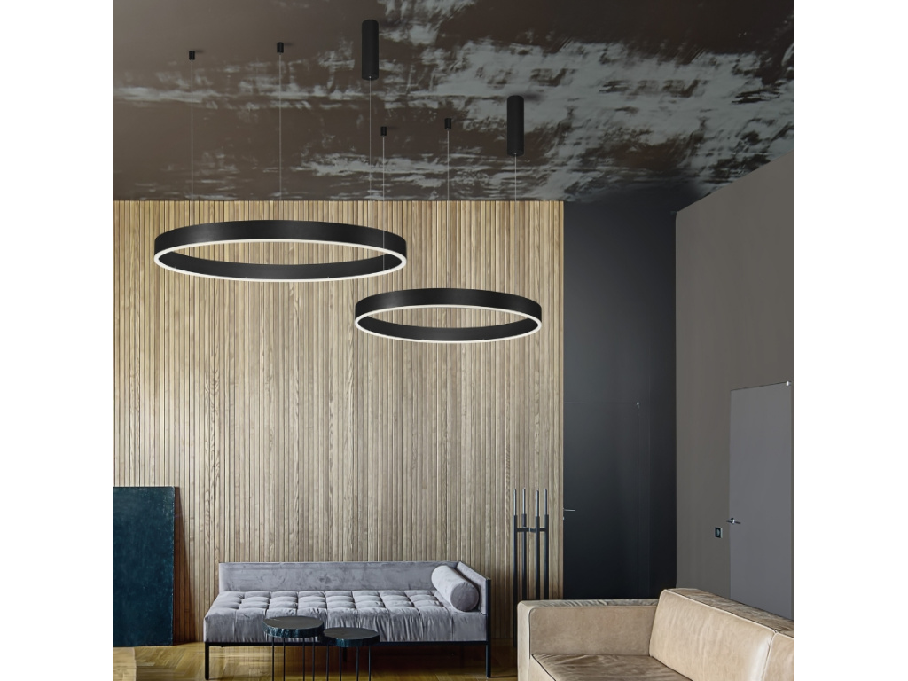 Exkluzivní závěsné světlo Motif propojuje nadčasový design, kvalitní materiály a funkčnost. Světlo Motif je vyrobeno ze černě lakovaného hliníku a doplněno silikonovými pruhy se zabudovaným LED osvětlením, které je stmívatelné. To vás okouzlí teplým bílým světlem, které prozáří celou místnost a dodá jí příjemnou hřejivou atmosféru. Svítidlo je charakteristické kulatým kruhovým stínidlem, které vytváří dokonalý doplněk do všech moderních interiérů.