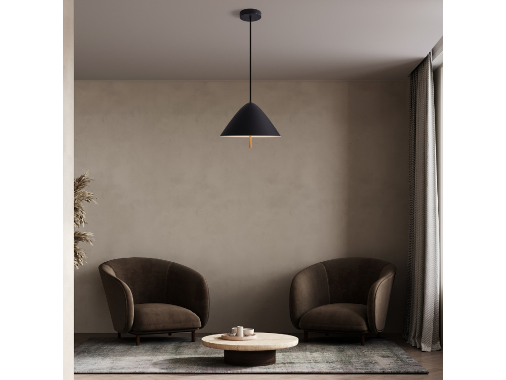 LED světlo Oros od Nova Luce je elegantní závěsné svítidlo s minimalistickým designem, které se hodí do moderních interiérů. Černé kovové kuželovité stínidlo směruje světlo směrem dolů, což vytváří příjemnou a útulnou atmosféru. Stínidlo je zakončeno zlatým detailem, jenž mu přidává jemný kontrast a nádech luxusu. Teplota světla 3000 K poskytuje teplé bílé osvětlení, které je vhodné do obytných prostor, jako je jídelna nebo obývací pokoj. Díky své jednoduchosti a sofistikovanosti se Oros snadno začlení do různých stylů interiéru.