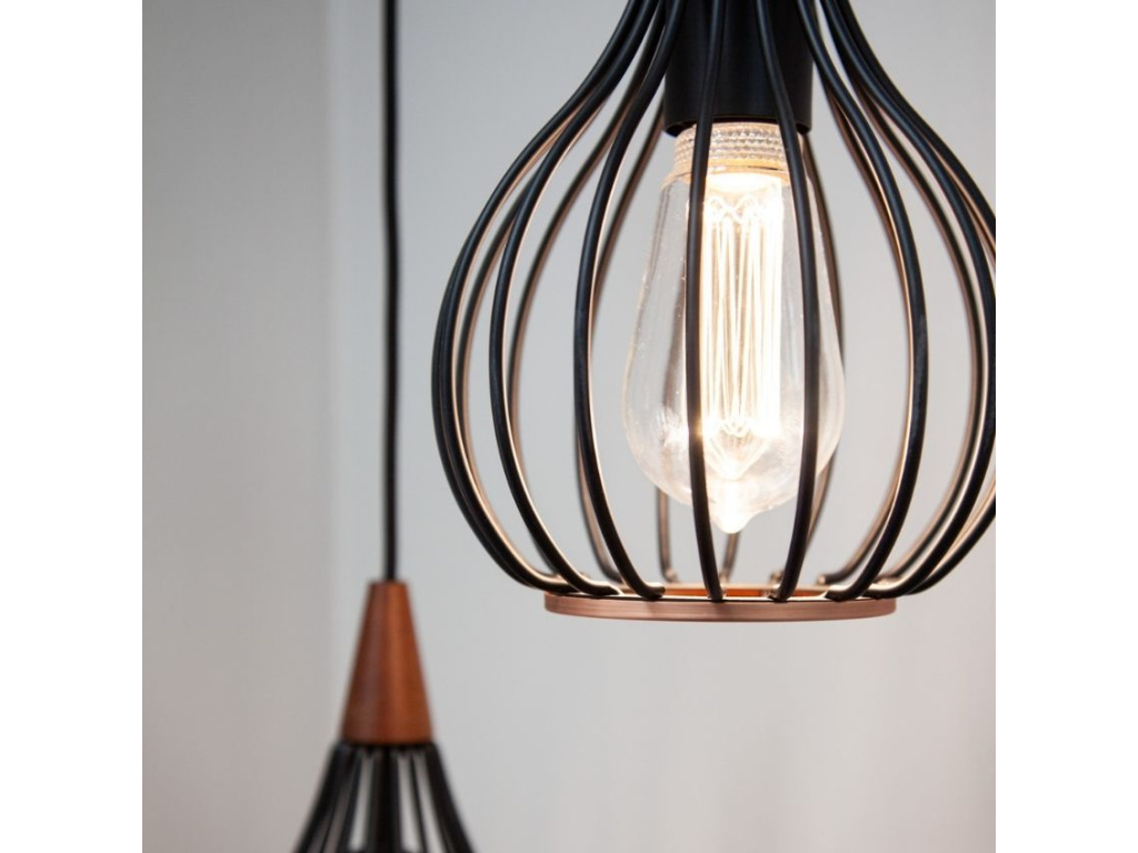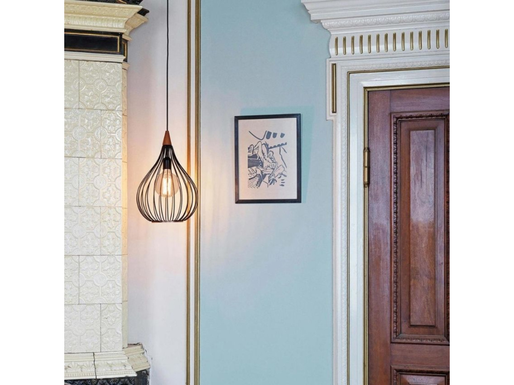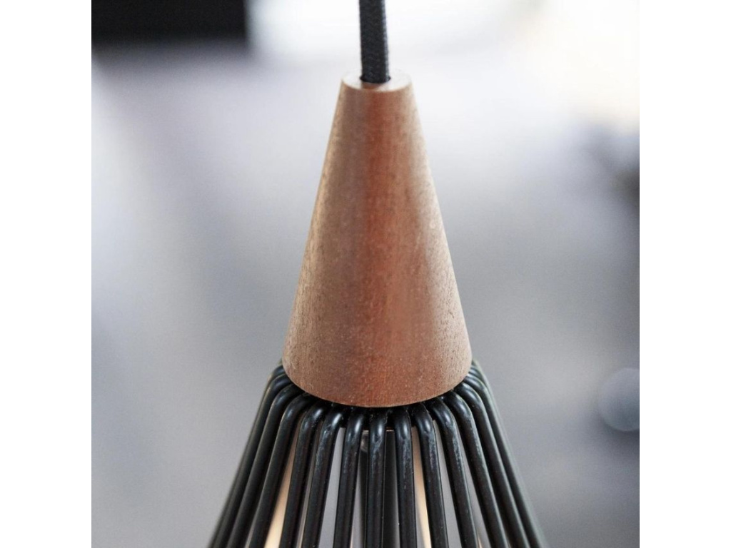 Elegantní závěsné světlo Drops značky Halo Design zaručeně zútulní každý interiér. Černé stínidlo si získá vaši pozornost především svým tvarem - připomíná velkou kapku. Je tvořeno jemnou sítí tyček z černě lakovaného kovu a ozvláštňují ho zajímavé dřevěné detaily. Právě spojení chladného kovu a přírodního detailu z něj dělá originální designový kousek. Drops můžete zakoupit ve čtyřech velikostech. K dispozici jé také v opálově bílém provedení se skleněným stínidlem.