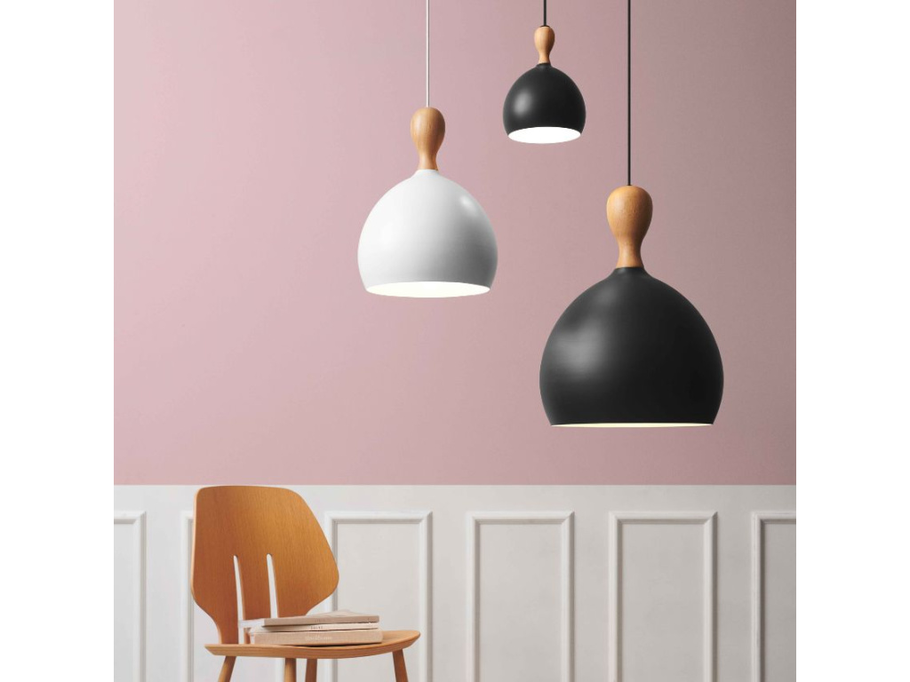 Elegantní závěsné světlo Halo Design Dueodde je pojmenováno podle dánské pláže Dueodde, jejíž extrémně jemný písek se používá při výrobě přesýpacích hodin. A právě přesýpací hodiny připomíná svým tvarem černé kovové stínidlo světla Dueodde. které je doplněno o detail z masivního dubového dřeva. Světlo je zavěšené na 250 cm dlouhém bavlněném kabelu, jehož délku můžete přizpůsobit vašim potřebám. Můžete ho mít ve čtyřech různých velikostech a také v bílé barvě. Dostupná je i varianta tvořená opálově bílým sklem.