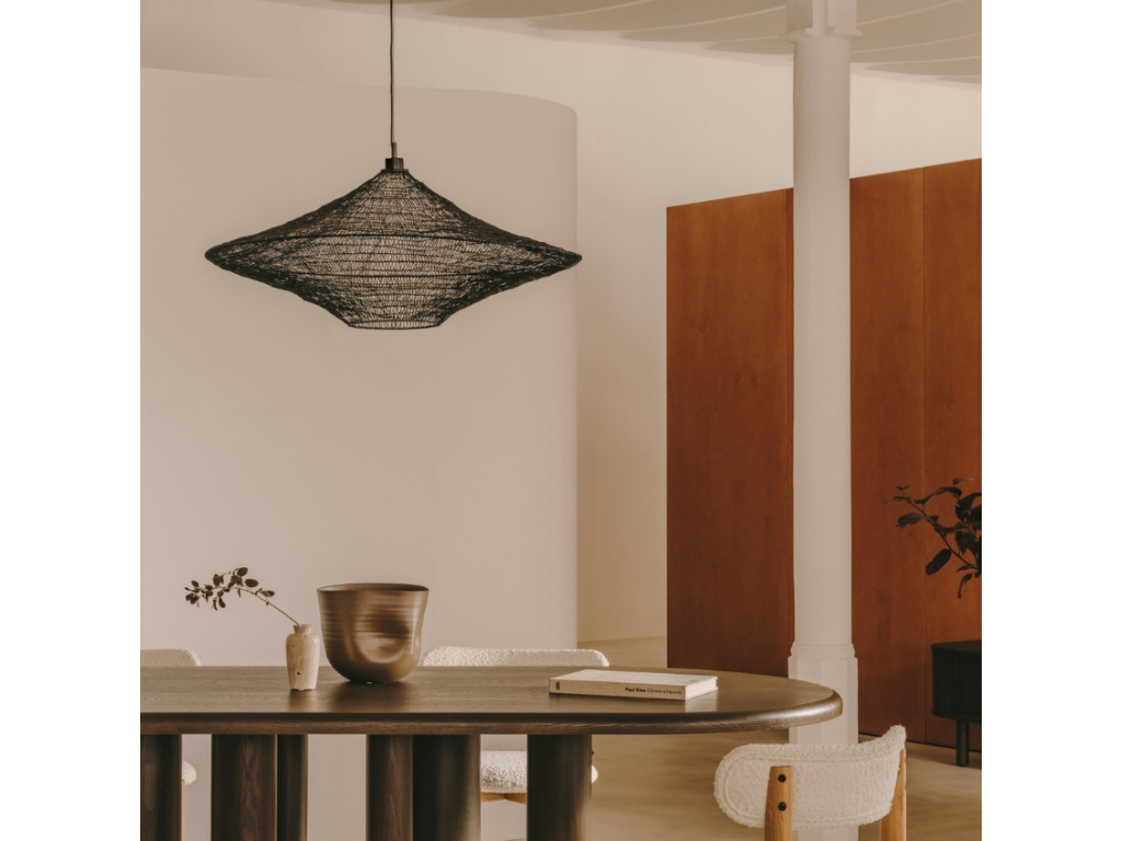 Makai s černým stínidlem z kovové sítě v sobě dokonale snoubí osvětlení a design. Toto závěsné světlo dodá vašemu interiéru moderní nádech a zároveň prostor zútulní a naplní příjemným hřejivým světlem. Pokud potřebujete přinést nad váš jídelní stůl světlo, můžete to udělat stylově – se světlem Makai, které neunikne pozornosti žádného vašeho hosta. Vyjímat se bude samozřejmě i jinde, třeba v ložnici nad postelí nebo v obývacím pokoji nad pohovkou. V sérii Makai najdete také větší verzi s průměrem celých 100 cm.