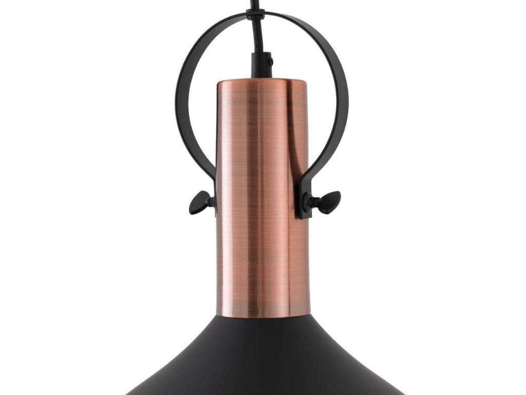 Moderní závěsné světlo Somcasa Agres je designovým doplňkem každé restaurace i jídelny. Jednoduché linie černého kovového stínidla se krásně doplňují s měděným válcem v horní části světla. Závěsný kabel černé barvy s délkou 97 cm se napojuje do kovového baldachýnu pro uchycení svítidla.