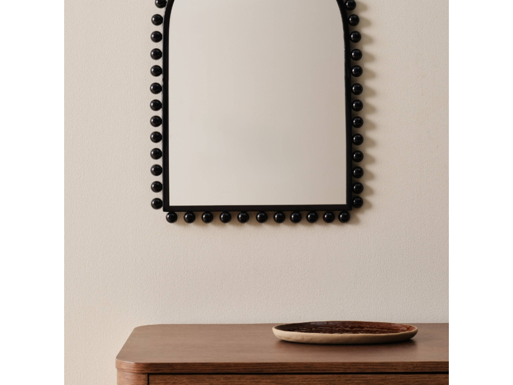 Zrcadlo LUNA zaujme na první pohled svým charakteristickým designem. Výrazný kovový rám s jemně zaoblenými akcenty vytváří harmonii mezi elegancí a moderním stylem. Zakřivený tvar zrcadla dodává prostoru jemnost a vizuální lehkost – díky svému univerzálnímu vzhledu se hodí do různých typů interiérů od minimalistických až po industriální. Skvěle odráží světlo a opticky zvětšuje prostor, čímž z něj činí ideální doplněk do obývacího pokoje, ložnice nebo vstupní haly. Vneste do svého domova styl a osobitost s tímto výrazným a nadčasovým kouskem!
