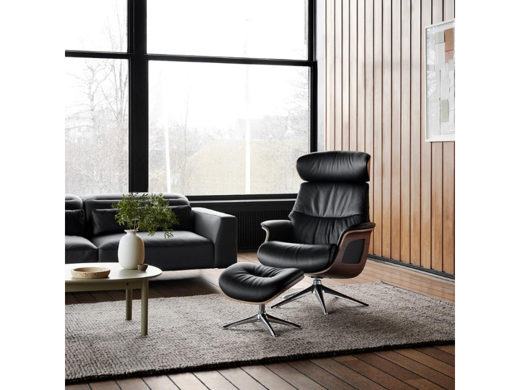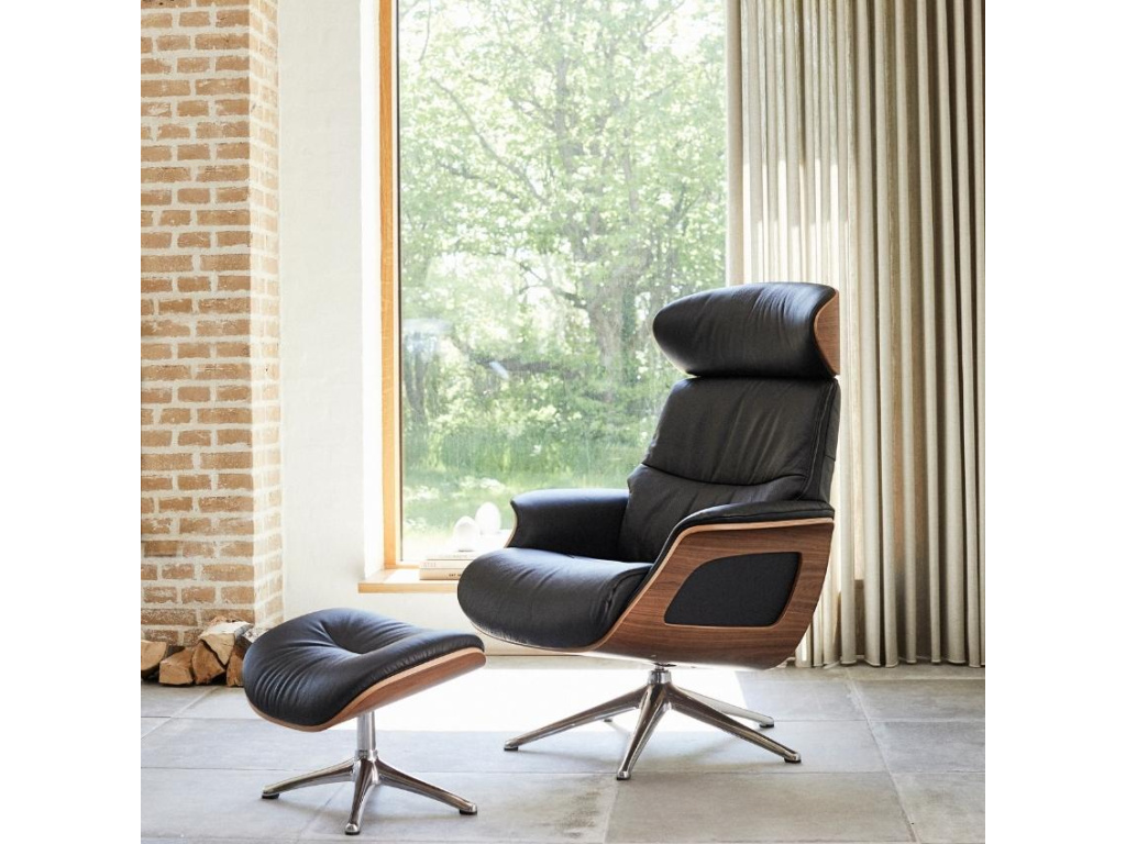 Lounge křeslo Clement značky Flexlux zaujme konstrukcí z ořechové dýhy, která vytváří ojedinělý bytelný základ celého systému. Tato robustní konstrukce v kombinaci s koženým sedákem a hliníkovou podnoží vytváří atraktivní kontrast. Konstrukce křesla, čalounění i jeho jednoduché tvary jsou promyšleny do posledního detailu. Měkké polstrování koženého sedáku a opěradla zajišťují kromě nadčasového a osobitého vzhledu také maximální komfort. Křeslo je čalouněné jedinečnou kůží Savoy, což je hustá semi-anilinová hovězí kůže s vrchním zrnem. Tato exkluzivní kůže má hladký a přirozený povrch, díky kterému budete mít při posezení velmi příjemný pocit. Kůže je vysoce odolná vůči skvrnám a vyblednutí. Křeslo disponuje desetiletou zárukou na mechanické části, díky čemuž získává na odolnosti a kvalitě. Křeslo si můžete nastavit do několika různých poloh včetně hlavové opěrky, čímž si jej přizpůsobíte přesně dle vašich představ. Z tohoto křesla zkrátka nebudete chtít se zvednout. Clement se díky svým odolným vlastnostem skvěle hodí i do komerčních prostor jako jsou hotelová lobby či kanceláře.