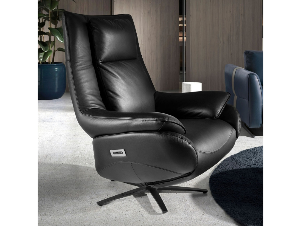 Toto černé otočné křeslo přinese do vašeho domova kombinaci elegance a komfortu, kterou oceníte při každém odpočinku. Jeho čalounění z hovězí kůže působí luxusním dojmem a černá epoxidová podnož z nerezové oceli dodá interiéru moderní charakter. Díky elektrickému relaxačnímu mechanismu si nastavíte opěradlo a opěrku nohou přesně podle svých potřeb, a vytvoříte si tak dokonalé místo pro relaxaci. Měkké polstrování z polyuretanové pěny vás obklopí pocitem maximálního pohodlí. Ideální pro chvíle, kdy si chcete dopřát zasloužený odpočinek ve velkém stylu.
