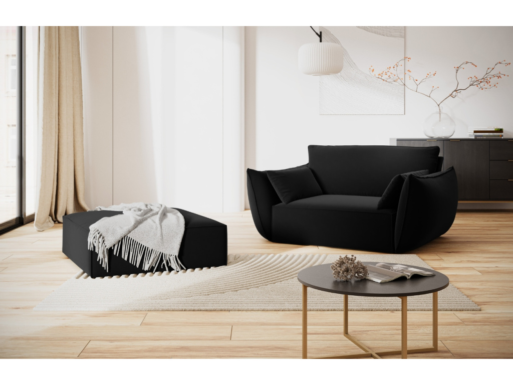 Klasické křeslo Kaelle od značky Micadoni zaujme elegantním nízkým sezením a tvarovanými područkami, které mu dodávají jedinečný vzhled. Obdélníková silueta s propracovaným lemováním kolem područek a opěradel připomíná tvary polštářů, které poskytují pohodlí a činí křeslo ideálním doplňkem moderního obývacího pokoje. Součástí sezení jsou malé polštářky, které dodává styl i komfort. Celý povrch je čalouněn sametovou tkaninou, která působí čistě a luxusně. Tento model lze navíc snadno kombinovat s dalším nábytkem ze stejné kolekce, který je dostupný jak v žinylkovém, tak v sametovém provedení.