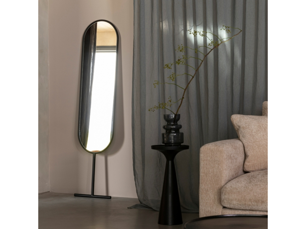Elegantní stojací zrcadlo ZUIVER TESS zaujme na první pohled svým čistým designem. Kovový rám v černé barvě působí luxusním dojmem, a dodá tak do vašeho interiéru jemný a praktický prvek, který oceníte. Zrcadlo se skvěle hodí do moderních i klasických interiérů, a to především díky nadčasovému vzhledu.