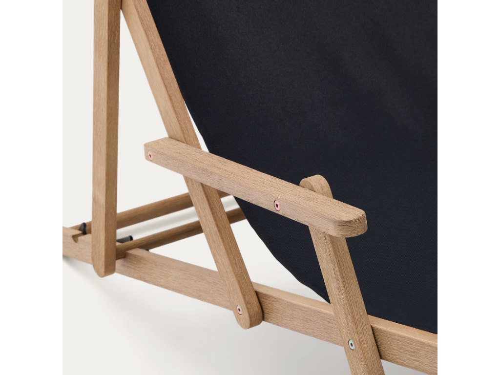 Užijte si příjemné chvíle na prosluněné terase s tímto polohovatelným lehátkem Kave Home Vilara! Kombinace látkového sedáku v černé barvě a područek z akátového dřeva nabízí dokonalé pohodlí. Látka sedáku je povrchově ošetřená a odolná proti UV záření, takže si dlouho zachová barevnost. Lehátko je navíc skládací, můžete ho tudíž kdekoli uložit, aniž by zabíralo místo, a snadno přenášet – klidně i k vodě nebo na pláž. Užijte si letní pohodu s tímto elegantním lehátkem Vilara, v nabídce je hned v několika krásných provedeních!