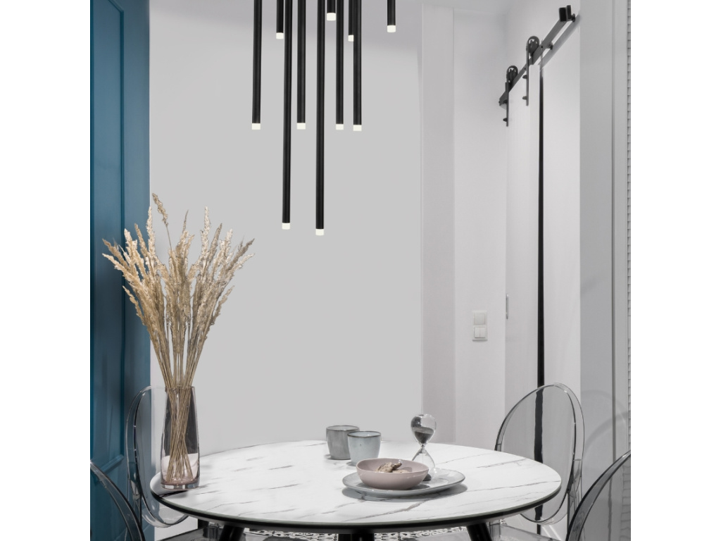 Osvětlení nemusí být nuda! Originální a elegantní kousek Trimle od značky Nova Luce bude chloubou interiéru, kterou nikdo nepřehlédne. Deset stínidel různých délek se zabudovanými LED žárovkami připomíná kouzelnické hůlky, které ze stropního zavěšení visí v různých výškách. Trimle se bude skvěle vyjímat například nad jídelním stolem nebo kuchyňským ostrůvkem – posviťte si na společnou rodinnou večeři stylově!
