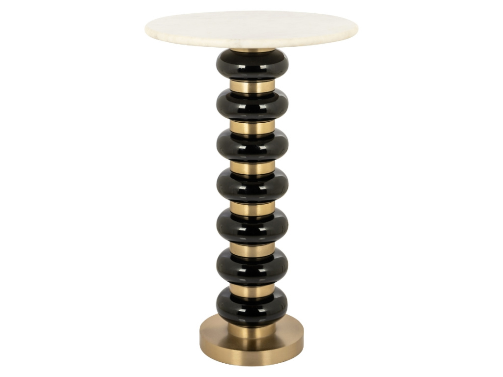 Nevšední odkládací stolek Barbara od značky Richmond působí díky mramorové desce a zlacenému hliníku okázalým dojmem, který do vašeho interiéru vnese nádech luxusu. Hliníkové pruhy tvořící podnož jsou prokládány oblými skleněnými díly v černé barvě a vytvářejí tak zajímavý efekt připomínající navlečené korálky. Stolek se bude skvěle kombinovat se zlatými doplňky. Umístit jej můžete vedle pohovky jako prostor na odložení kávy nebo jej použít jako podstavec pro vystavení dekorací a květin.