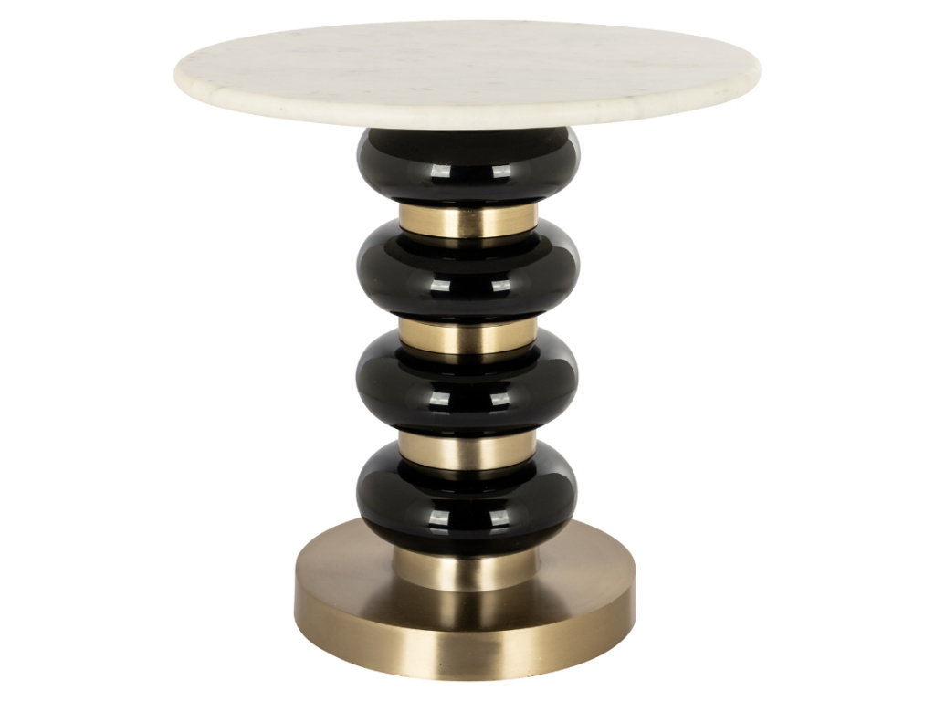Nevšední odkládací stolek Boann od značky Richmond působí díky mramorové desce a zlacenému hliníku okázalým dojmem, který do vašeho interiéru vnese nádech luxusu. Hliníkové pruhy tvořící podnož jsou prokládány oblými skleněnými díly v černé barvě a vytvářejí tak zajímavý efekt připomínající navlečené korálky. Stolek se bude skvěle kombinovat se zlatými doplňky. Umístit jej můžete vedle pohovky jako prostor na odložení kávy nebo jej použít jako podstavec pro vystavení dekorací a květin.
