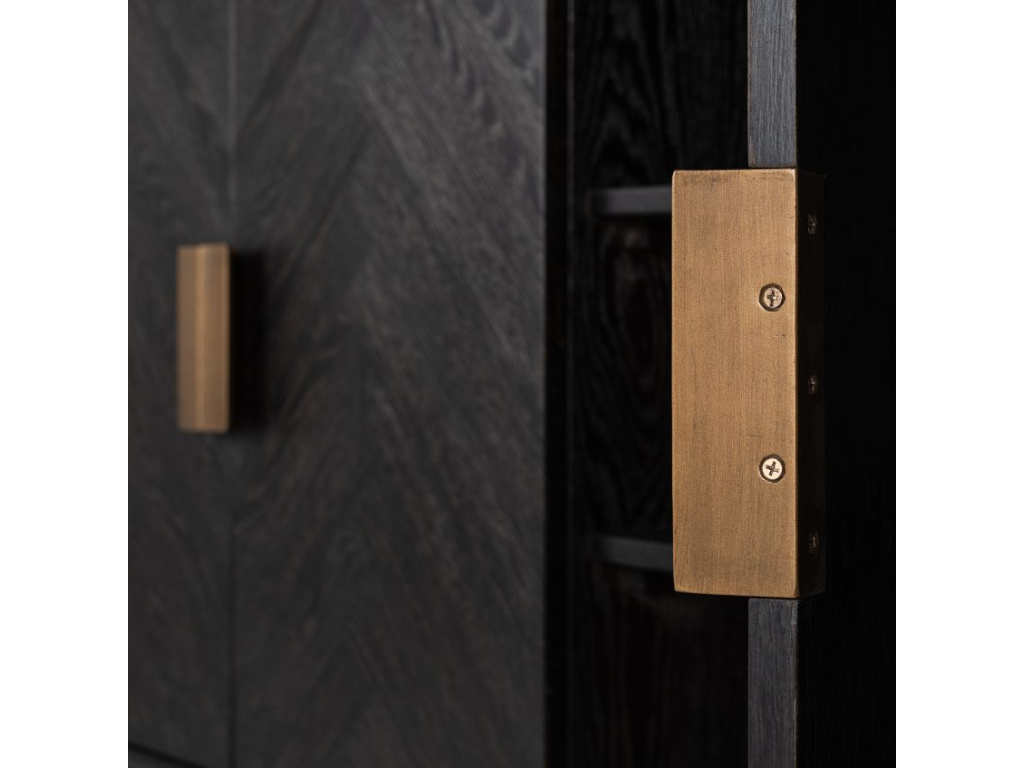 Designová komoda Blackbone od prémiové značky Richmond je absolutním vítězem mezi unikáty. Korpus z dubové dýhy elegantně doplňuje vzor rybí kosti po celém povrchu komody, díky čemuž získává komoda na osobitosti a originalitě. Lakovaná ocelová podnož v měděné barvě dodává komodě patřičnou stabilitu a navíc s sebou přináší nádech luxusu. Úložný prostor komody je rozčleněn do čtyř uzavřených a tří otevřených polic, kam snadno uložíte svůj inventář. Komoda se hodí nejen do moderních interiérů.
