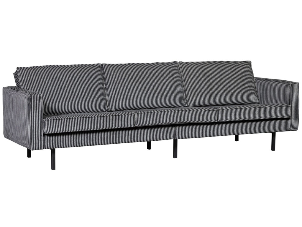 Vytvořte si s třímístnou pohovkou Rodeo od značky WOOOD dokonalý prostor pro relaxaci. Tato elegantní černo-šedá pruhovaná pohovka skvěle doplní každý prostor, ať už v obývacím pokoji, pracovně nebo ložnici. Černě lakovaná kovová podnož podtrhává celkový design pohovky. Oživte svůj domov s tímto stylovým kouskem, který spojuje moderní design s pohodlím. V kolekci Rodeo najdete také dvoumístnou verzi.