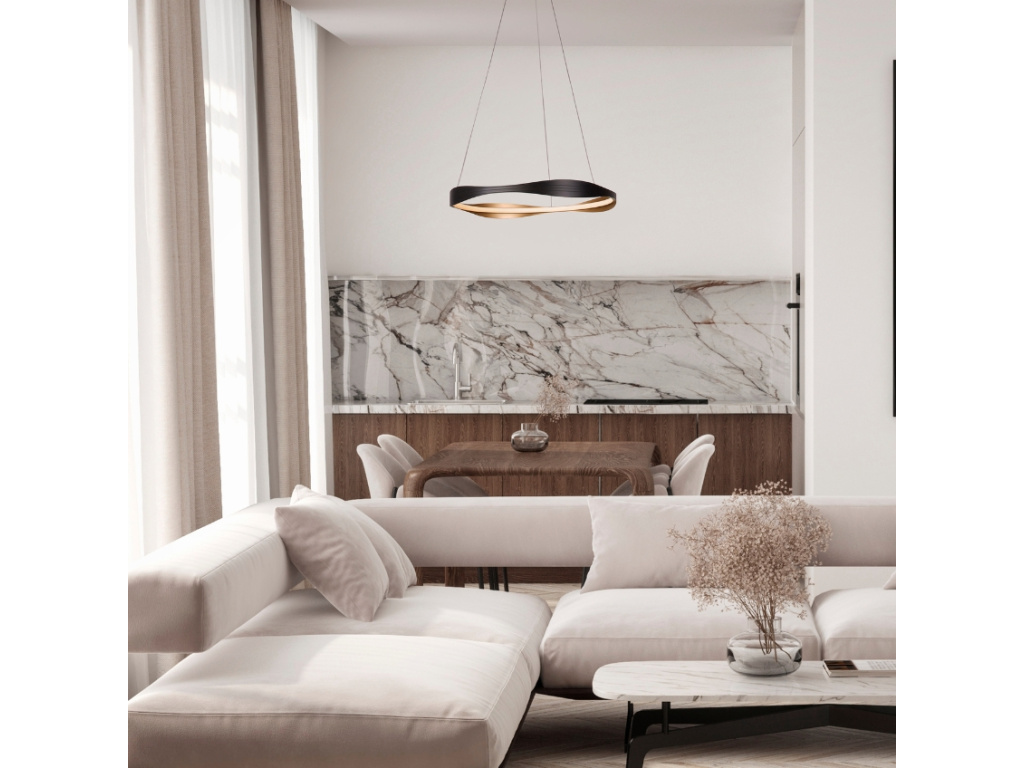 Doplňte svůj interiér tímto luxusním kouskem – závěsným LED světlem Dobi od Nova Luce! Dobi se vyznačuje elegantními, organickými křivkami a harmonickou kombinací černé a zlaté, které v tomto designu vytvářejí sofistikovanou barevnou rovnováhu. Toto stmívatelné světlo nabízí nastavitelnou intenzitu pomocí dálkového ovládání a teplotu světla v rozmezí 2700–5000 K, takže si snadno přizpůsobíte osvětlení podle aktuální potřeby. Světlo Dobi je ideální pro moderní interiéry, kde skvěle vynikne například nad jídelním stolem nebo v centru obývacího pokoje.