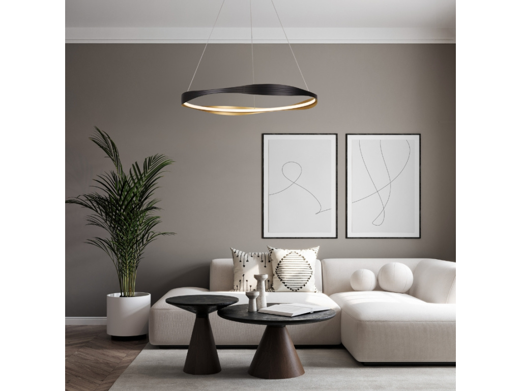 Doplňte svůj interiér tímto luxusním kouskem – závěsným LED světlem Dobi od Nova Luce! Dobi se vyznačuje elegantními, organickými křivkami a harmonickou kombinací černé a zlaté, které v tomto designu vytvářejí sofistikovanou barevnou rovnováhu. Toto stmívatelné světlo nabízí nastavitelnou intenzitu pomocí dálkového ovládání a teplotu světla v rozmezí 2700–5000 K, takže si snadno přizpůsobíte osvětlení podle aktuální potřeby. Světlo Dobi je ideální pro moderní interiéry, kde skvěle vynikne například nad jídelním stolem nebo v centru obývacího pokoje.