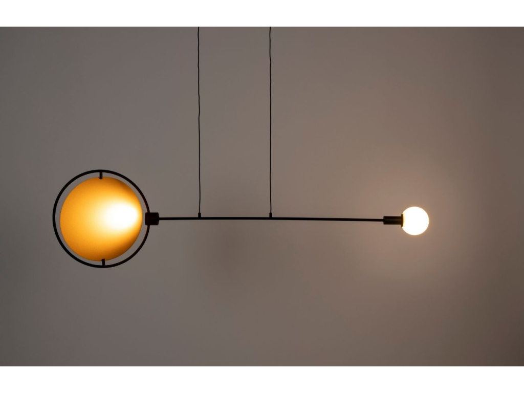 Závěsné světlo SIRIUS značky ZUIVER představuje opravdu originální designový kousek. Připomíná souhvězdí, které šíří do okolí různé druhy světla. Disponuje dvěma světelnými zdroji. Jeden z nich má podobu malého skleněného stínidla bílé barvy a druhý svítí na zlatý kovový kotouč, kterým můžete pohybovat a ovlivnit tak směr odraženého světla. Ze stropu je spuštěno pomocí dvou kabelů a v prostoru se tak stylově vznáší. SIRIUS je součástí série ve které najdete nástěnné světlo, závěsné světlo i stojací lampu.