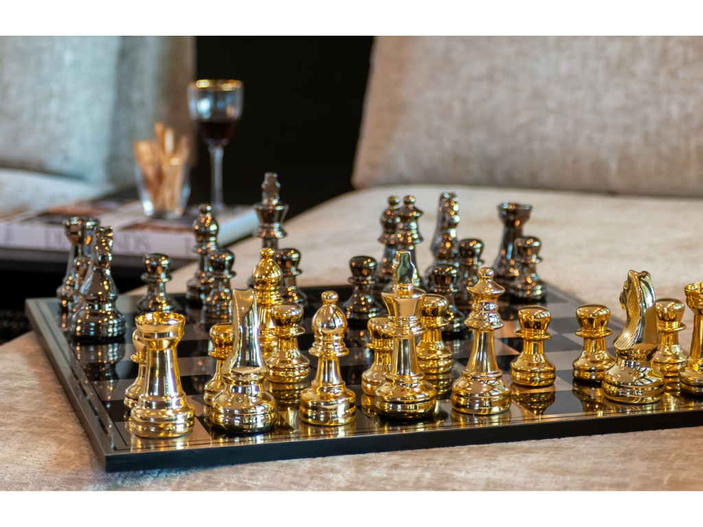 Šachy Saray přemění vaši hru na vizuální zážitek. Lesklé černo-zlaté figury dokonale ladí s elegantním povrchem desky, která se stane nepřehlédnutelným doplňkem vašeho interiéru. Jejich nadčasový design osloví nejen hráče, ale i milovníky stylových dekorací. Budou skvělým dárkem pro všechny, kdo oceňují estetiku i strategickou hru. Umístěte je na konferenční stolek nebo knihovnu a nechte je vyniknout.