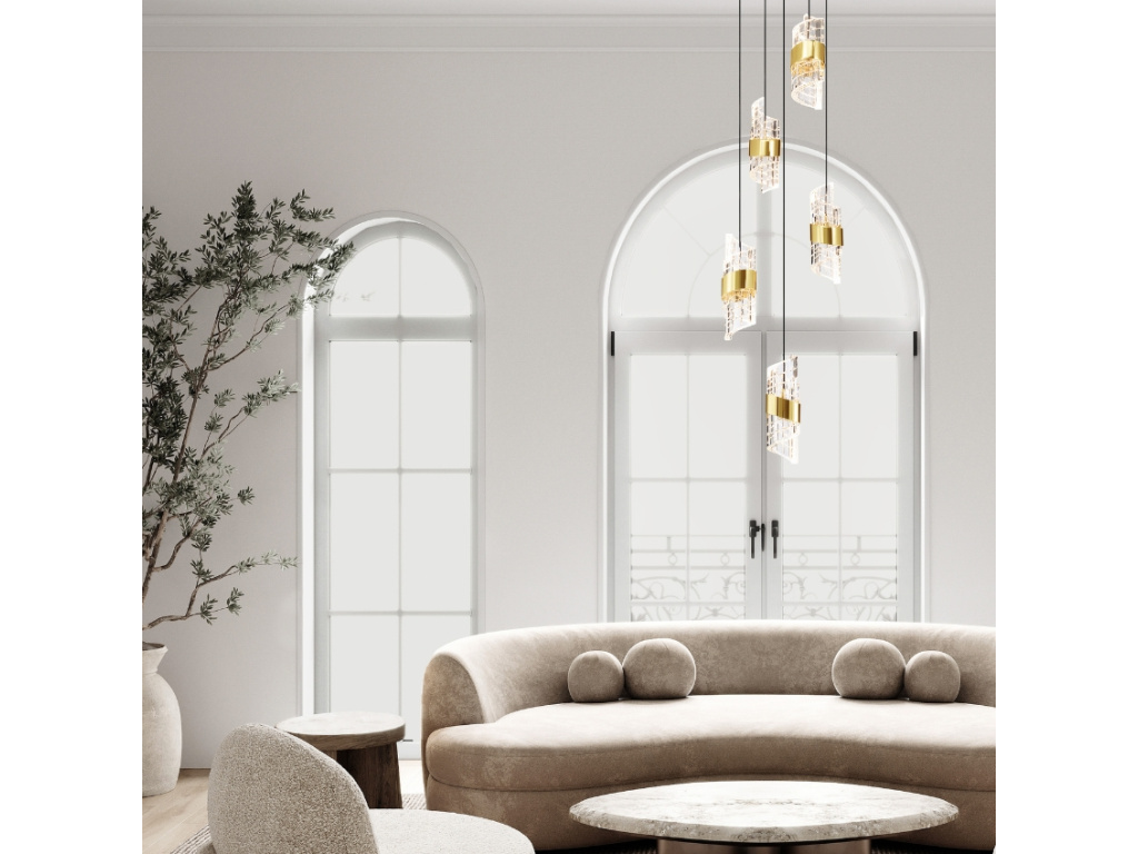 Kolekce LED světel Seneca od značky Nova Luce se vyznačuje moderním designem, který kombinuje průhledný akryl s kovem. Průhledná akrylová stínidla mají jedinečnou texturu, která připomíná jemně strukturované sklo, a dodávají světlu efektní záři. Zlaté kovové detaily uprostřed dodávají celému vzhledu nádech luxusu a elegance. Kovová základna se vyznačuje jednoduchým černým designem, který zajišťuje stabilitu a zároveň nechává vyniknout jednotlivým závěsným světelným prvkům. Tato kolekce se hodí do moderních interiérů, kde bude působit jako stylový a výrazný prvek.