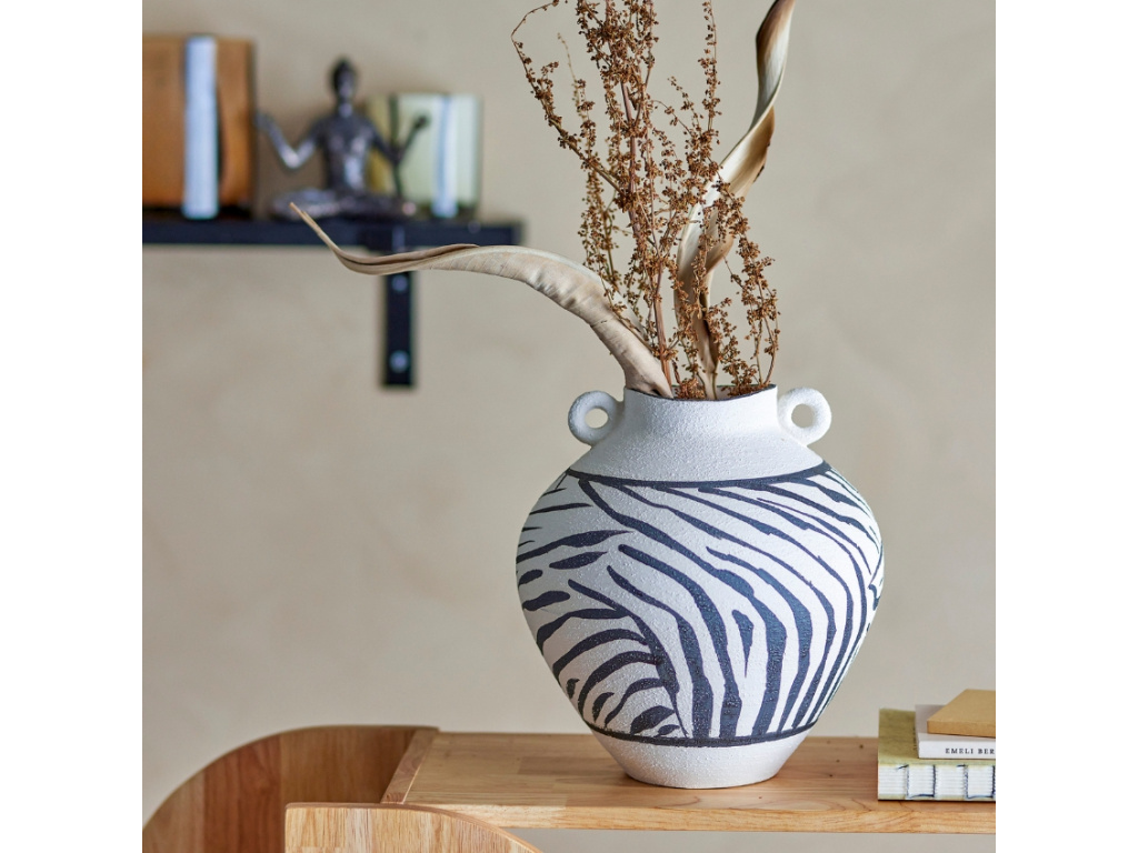 Váza Togo od dánské značky Bloomingville je ideálním místem pro vaše květiny, kde fantasticky vyniknou! Kameninová váza v černobílém provedení rozzáří každý kout komerčních i nekomerčních prostor. Váza má dokonalý tvar pro velkou kytici čerstvých nebo sušených květin. Bez květin obstojí váza i jako krásný dekorativní prvek na konferenčním stolku, parapetu či komodě. Udělejte si radost vázou, která se jen tak neokouká!