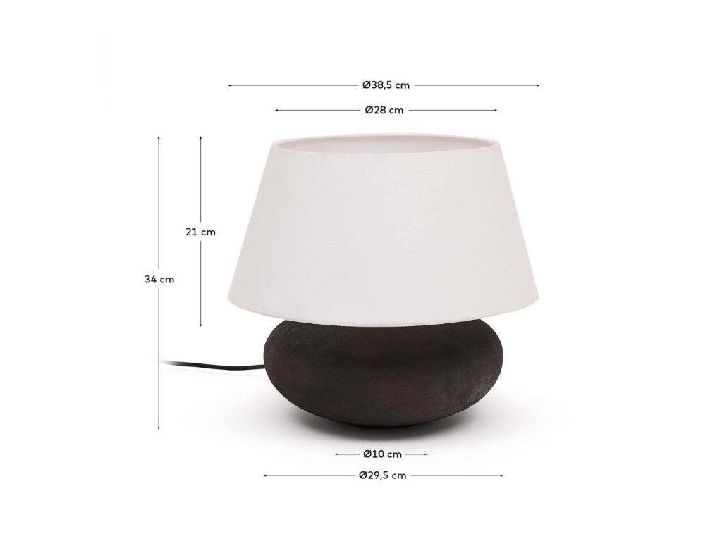 Oválný tvar designové stolní lampy Kave Home Nessi přinese do vašeho domova eleganci a nadčasovost. Její černobílé provedení zkrátka nevyjde z módy a zapadne do mnoha stylů interiérů – minimalistických, rustikálních i industriálních. Nessi v sobe kombinuje bavlněné stínidlo a kovovou podstavu, která je ozvláštněna terakotovým efektem. Vyjímat se bude na odkládacím stolku, komodě i v pracovně nebo ložnici!