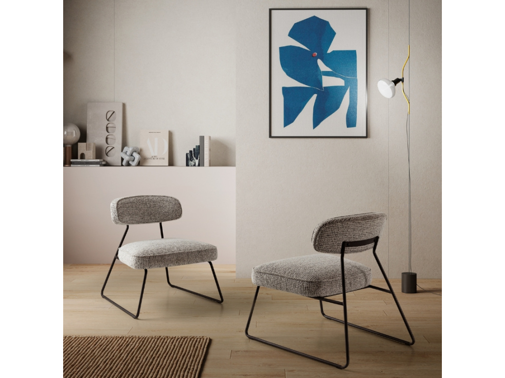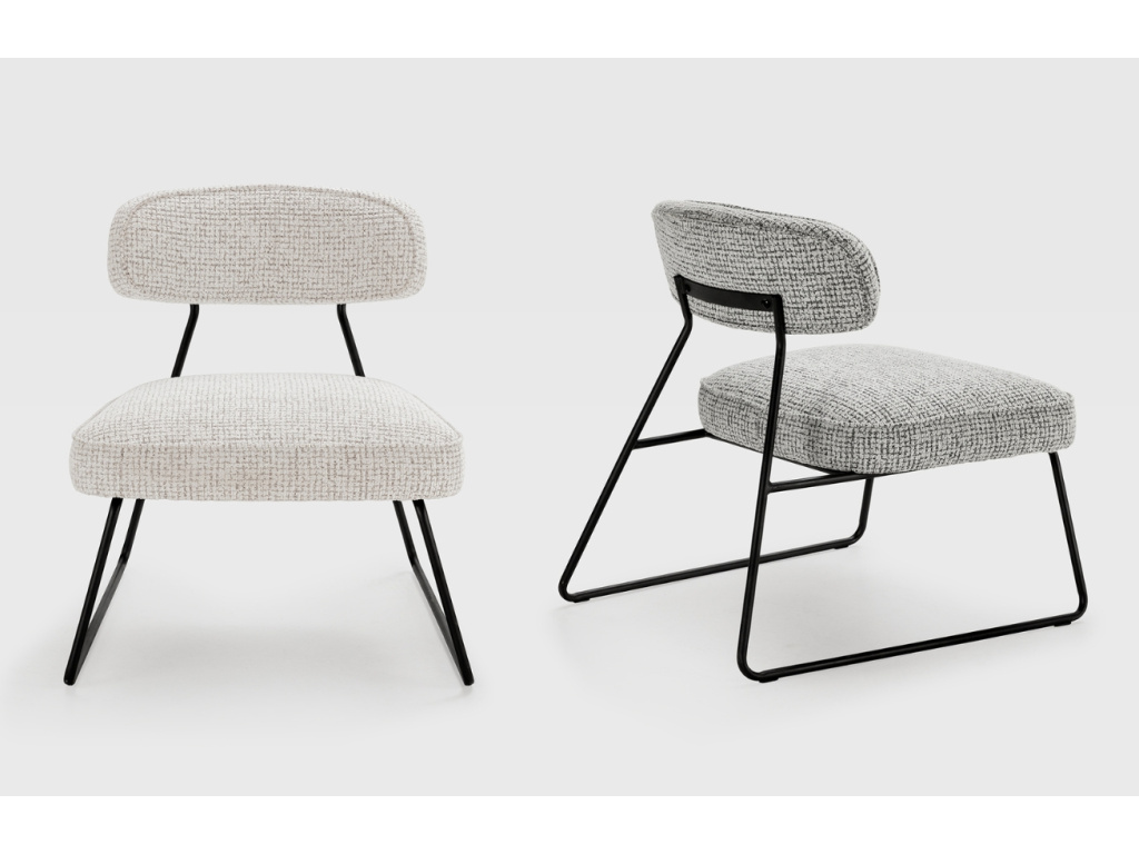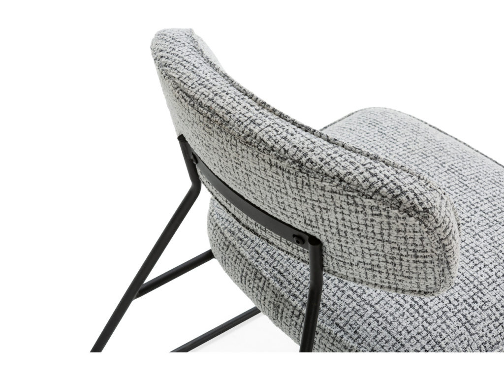Křeslo Elon zaujme čistou geometrií a moderním pojetím komfortu. Robustní čalounění s výraznou strukturou látky s černobílými nuancemi kontrastuje s odlehčenou konstrukcí z černého kovu, která působí vzdušně a dynamicky. Díky svému designu skvěle zapadne do moderních obývacích pokojů, loftových interiérů nebo stylových kancelářských lounge zón. Model Elon je dostupný ve dvou barevných variantách.