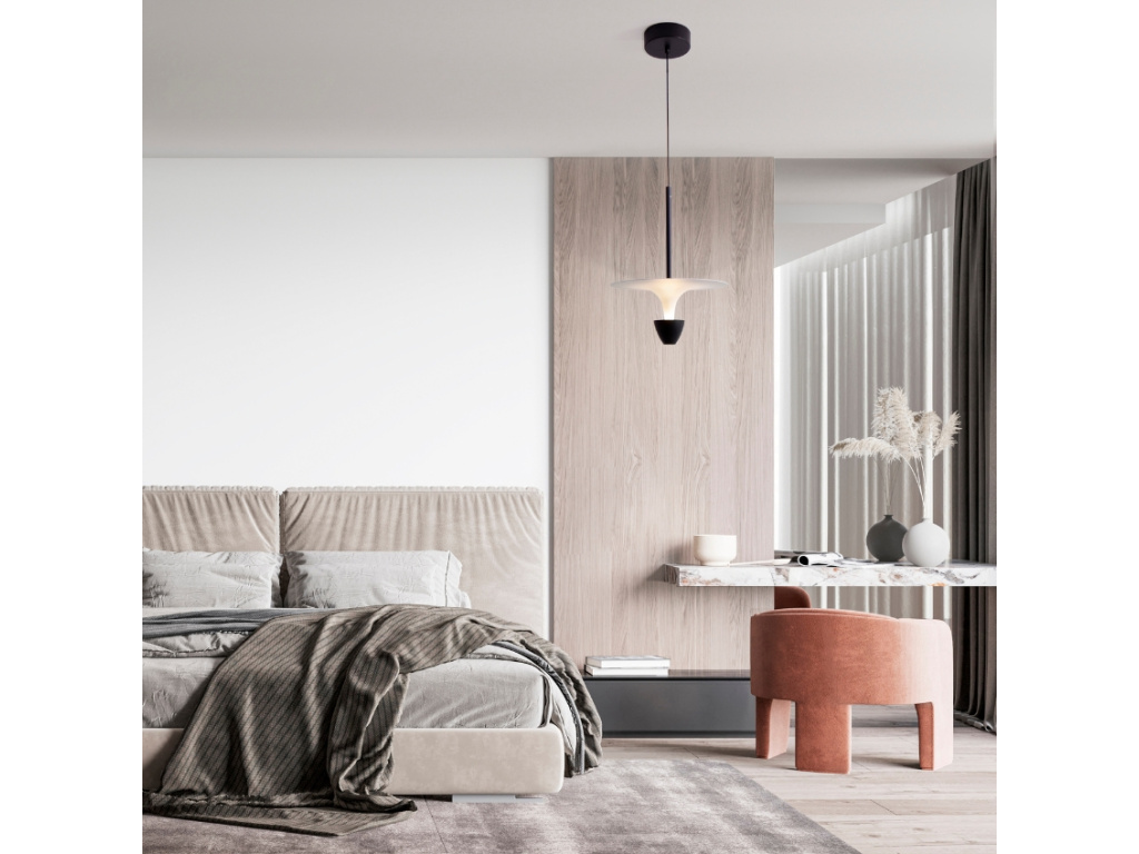 Závěsné LED světlo Luet od Nova Luce představuje dokonalé spojení minimalismu a elegance, které pozvedne každý interiér. Jeho charakteristickým rysem je tvar připomínající kapku, doplněný o jemné linie stínidla, které zajišťují měkké a příjemné osvětlení. Integrovaná LED technologie poskytuje energeticky úsporný provoz a dlouhou životnost. Díky univerzálnímu designu se světlo skvěle hodí do ložnic, obývacích pokojů i moderních kanceláří. Závěsné lanko umožňuje snadné nastavení výšky, takže je možné přizpůsobit jeho umístění dle potřeby.