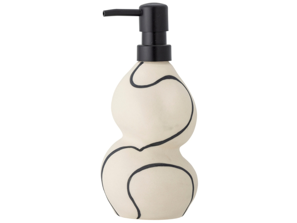 Dávkovač na mýdlo Minna od značky Bloomingville je elegantní doplněk, který vynikne v každé koupelně či kuchyni. Dávkovač je vyroben z kameniny a je zdobený ručně malovaným černým vzorem, který vytváří působivý kontrast na jemně bílém podkladu. Díky ruční výrobě je každý kousek unikátní. Tento kousek nejen skvěle vypadá, ale také přináší do vašeho interiéru osobitou eleganci a funkčnost.