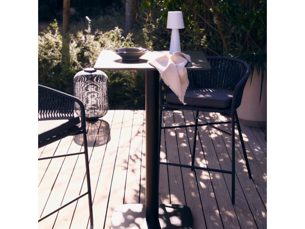 Barový stůl s černou čtvercovou HPL deskou je speciálně navržený pro prostory restaurací, barů a kaváren. V sérii Esilda najdete různé velikosti a provedení stolů, ale i samostatné podnože – můžete tak jednoduše sestavovat a měnit stoly dle vašich momentálních představ. Použitý materiál je odolný vůči skvrnám, nárazům i oděru a odolá vysokým teplotám – proto je vhodný právě pro komerční prostory. Skvěle se hodí pro venkovní posezení kaváren a restaurací, využít ho ale můžete také v domácnostech – zejména v těch, kde je problém s nedostatkem prostoru.