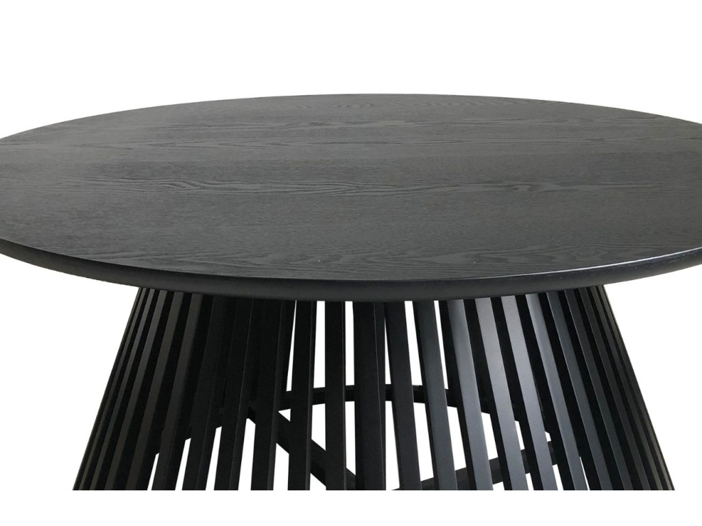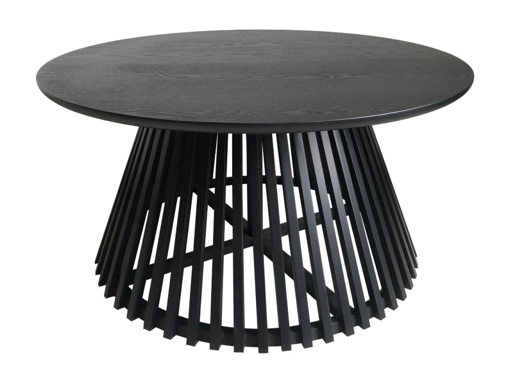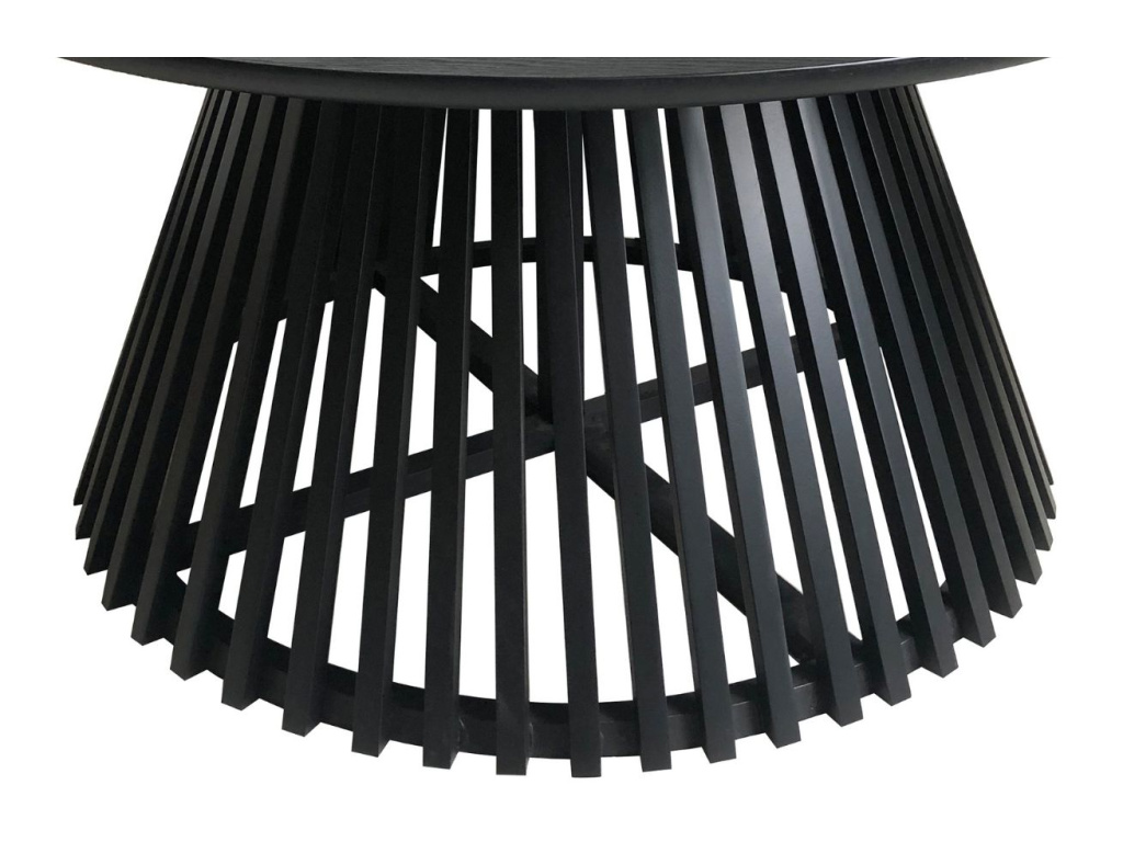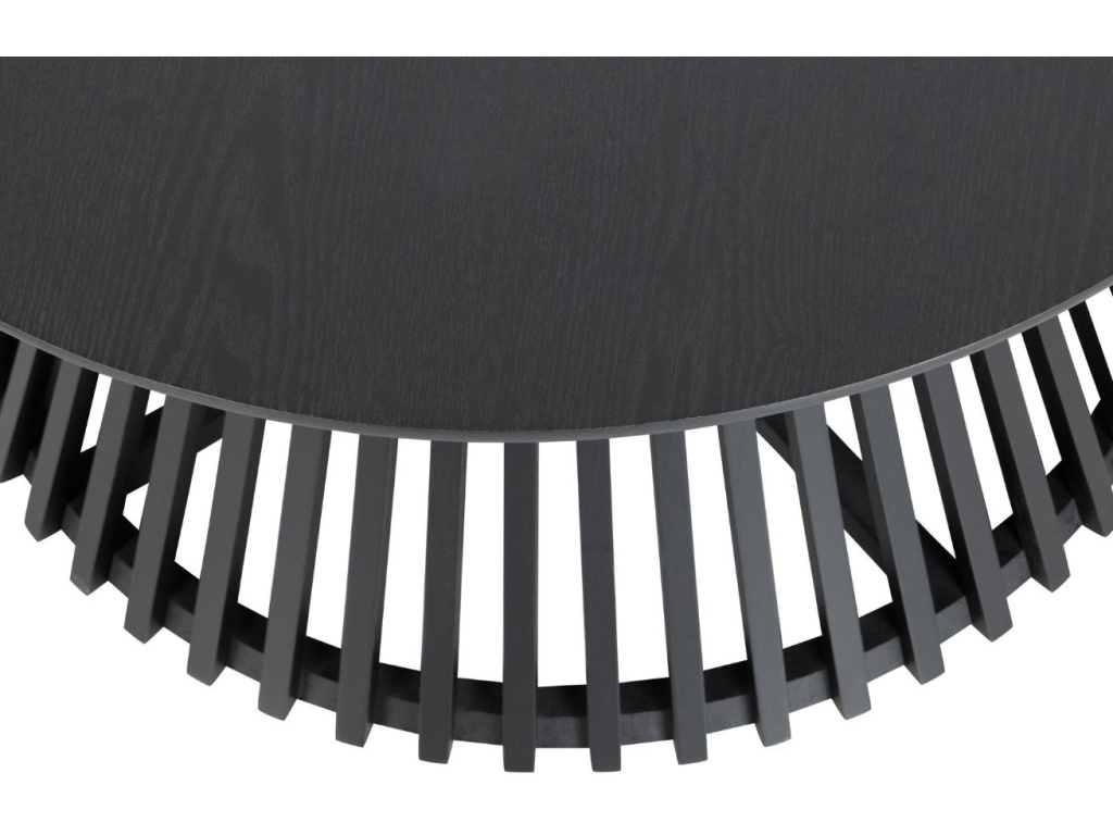 Kulatý konferenční stolek Tasset si získá pozornost díky své originální podnoži z úzkých borovicových lamel černé barvy. Podnož se v horní časti zužuje a je na ní usazena masivní borovicová deska o tloušťce 2 cm. Stolek můžete ve vašem interiéru doplnit odkládacím stolkem ze stejné série.