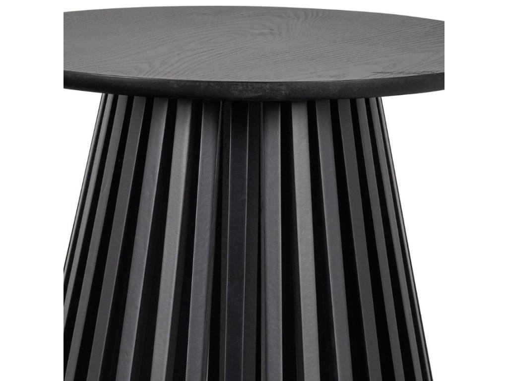 Kulatý odkládací stolek Tasset si získá pozornost díky své originální podnoži z úzkých borovicových lamel černé barvy. Podnož se v horní časti zužuje a je na ní usazena masivní borovicová deska o tloušťce 2 cm. Stolek můžete ve vašem interiéru doplnit konferenčním stolkem ze stejné série.