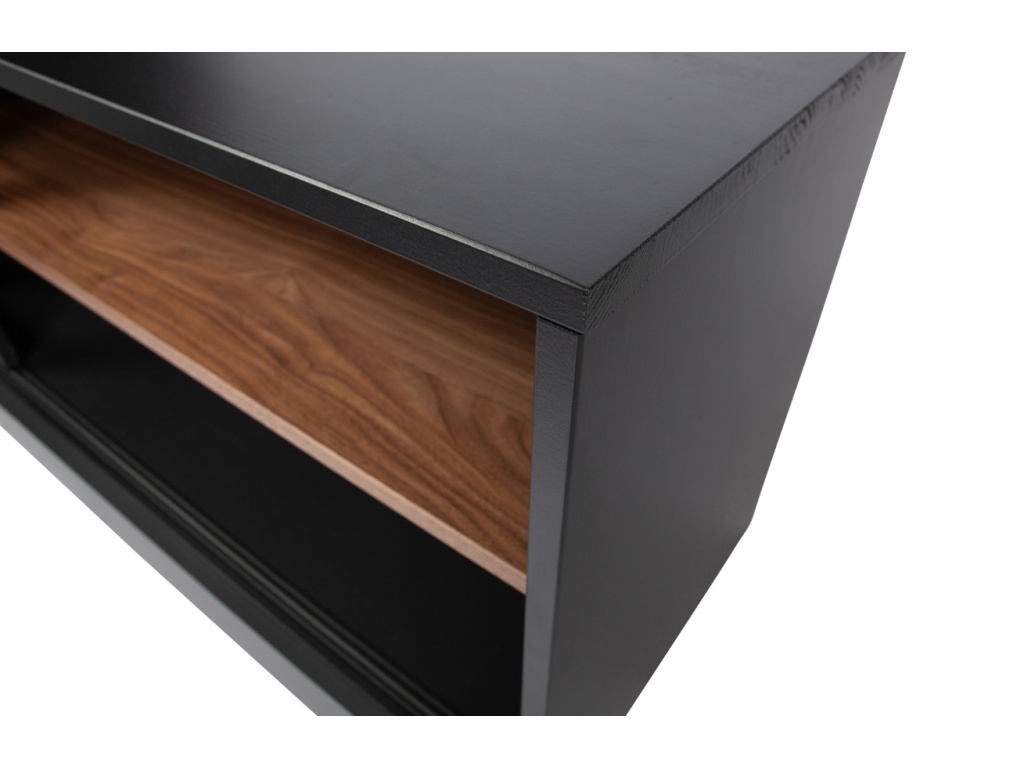 TV stolek Arthur je zástupce elegantní kombinace černě lakovaného borovicového dřeva a dřevotřísky s dýhou v barvě ořechového dřeva. Úložný prostor je řešený dvěma policemi a dvěma zásuvkami a nabízí tak dostatek místa pro uložení vašich věcí. TV stolek Arthur se hodí do moderních i klasických interiérů, které pro svůj zajímavý design oživí.