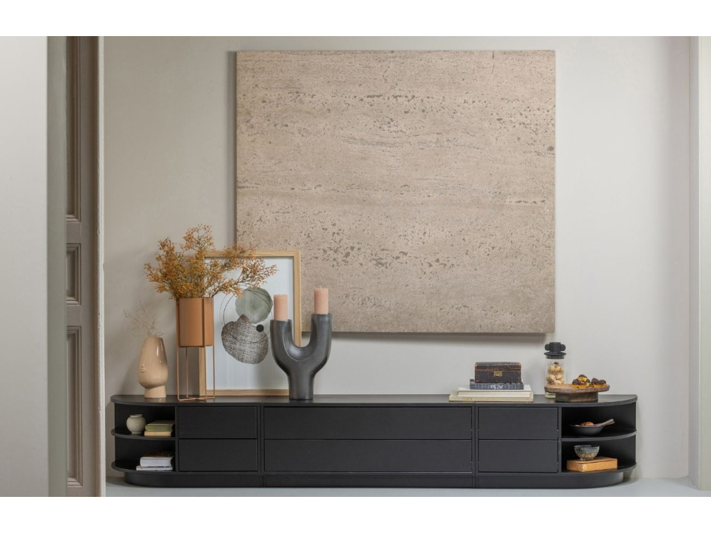 Borovicový TV stolek Finca s matně černým nátěrem nabízí úložný prostor v podobě dvou prostorných zásuvek a dvou otevřených polic. Na stolku nehledejte žádné úchytky - zásuvky se otevírají pomocí moderního systému push to open. Každá ze zásuvek má nosnost až 10 kg. V sérii Frederica najdete TV stolky různých velikostí - můžete je dle libosti poskládat dohromady a vytvořit tak stolek dle vašich potřeb. Interiér můžete doplnit a sjednotit také skříněmi a knihovnami Frederica.