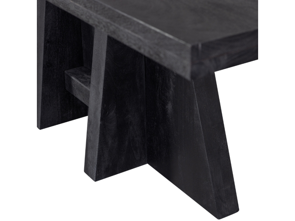 Jídelní stůl Anka od značky Hoorns zaujme na první pohled svým výrazným geometrickým vzhledem. Jedná se o mangové dřevo, které se řadí mezi nejtvrdší druhy na světě, a tak vám stůl nepochybně vydrží celou řadu let. Černý nátěr a ostrý tvar dělají stůl velice atraktivním, skvěle bude vypadat jak v rustikálních, tak industriálních jídelnách. Doprostřed desky naaranžujte vázu s velkou kyticí nebo neotřelou designovou mísu s ovocem. Ať už v jídelním koutu, nebo v otevřeném prostoru – tento jídelní stůl bude hlavním designovým prvkem, který nikdo jen tak nepřehlédne.