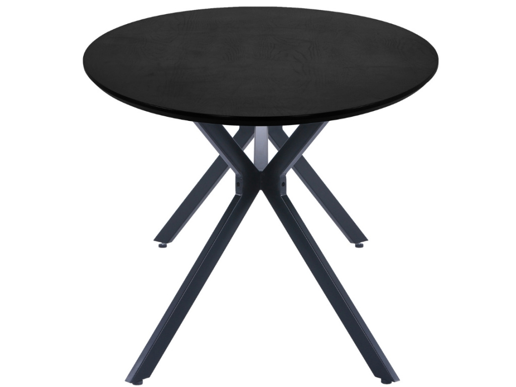 Moderní oválný jídelní stůl Arisa bude díky svému ráznému a minimalistickému stylu výrazným středobodem vaší jídelny. Tenká a široká deska stolu je z MDF v matné černé barvě. Díky velikosti desky dostanete možnost pohostit najednou až osm hostů. Osobitě řešená černě lakovaná kovová podnož představuje dominantní designový prvek stolu Arisa, na který se můžete spolehnout.