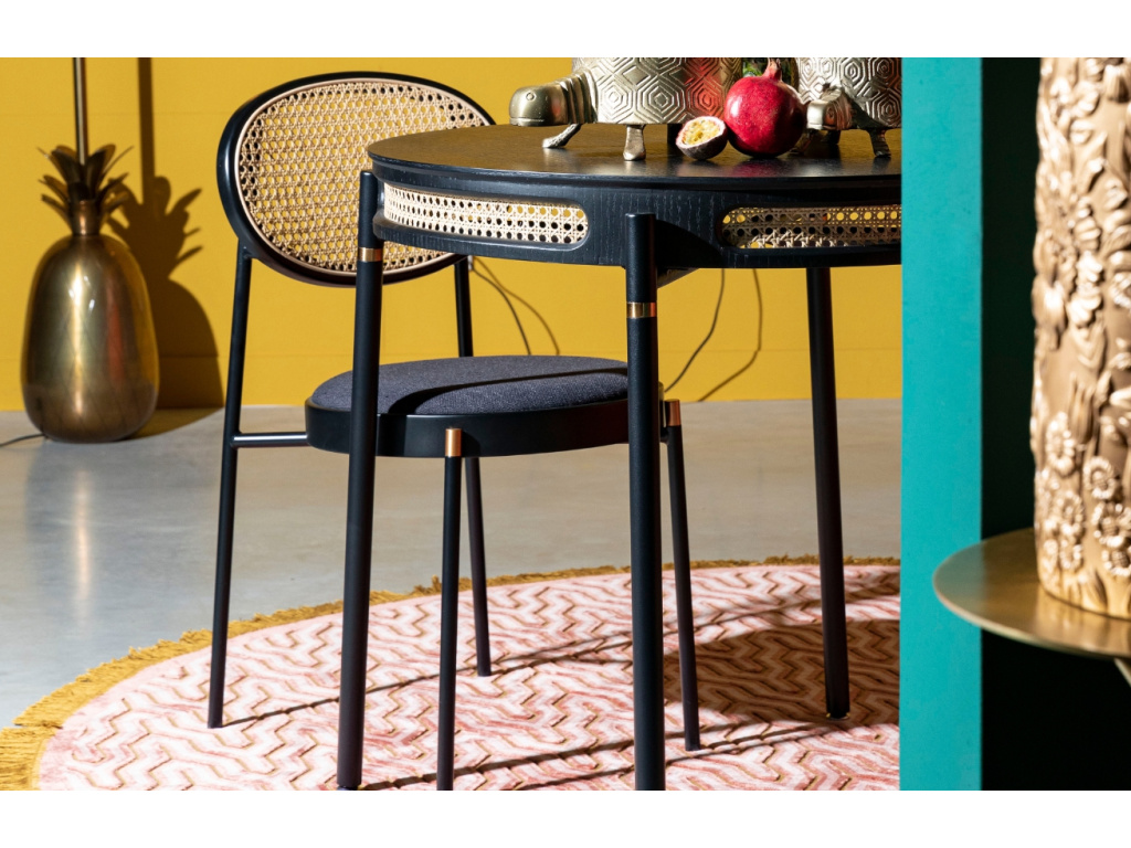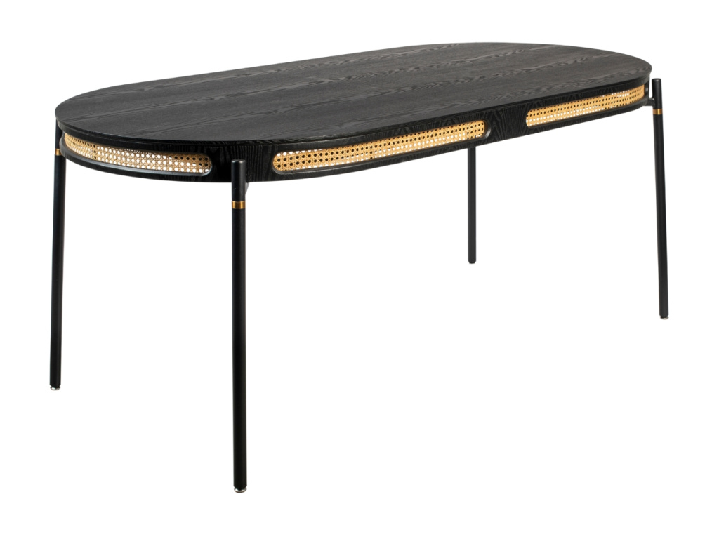 DON'T STOP THE WEBBING od značky Bold Monkey je výjimečný jídelní stůl, který spojuje retro šarm s moderním designem. Jeho elegantní oválná deska z černého dýhovaného dřeva je lemována ratanovým výpletem, což vytváří atraktivní kontrast a dodává stolu jedinečný charakter. Poskytuje dostatek prostoru pro pohodlné posezení až šesti osob, což z něj činí ideální volbu pro rodinné večeře i společenská setkání. Jeho design se skvěle hodí do moderních i retro laděných prostor a stane se výrazným prvkem každé jídelny.