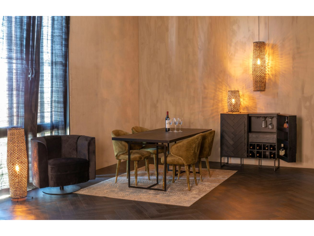 Černý jídelní stůl Class je tvořen dřevěnou deskou a elegantní podnoží černé barvy ve stylu vintage. Vrchní část stolu se vzorem rybích kostí je vyrobena z polotvrdé dřevovláknité desky, kterou z obou stran pokrývají tenké desky z akátové dýhy. Podnož je zakončena gumovými podložkami chránícími vaší podlahu před poškrábáním. Stůl můžete skvěle doladit s dalšími kousky ze série DUTCHBONE CLASS.