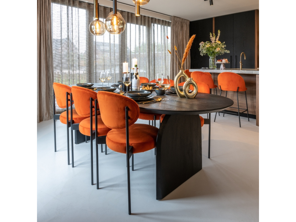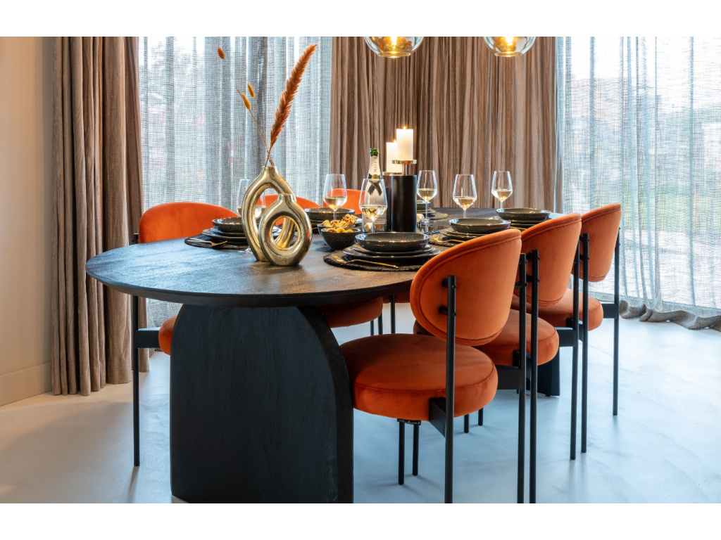 Jídelní stůl Hudson od značky Richmond se vyznačuje svým robustním a přesto elegantním designem. Oválná deska v černé barvě je vyrobená z mangového dřeva a dominantním prvkem celého designu stolu je dřevěná podnož, která celému stolu dodává na vzdušnosti a atraktivitě. Stůl se stane perfektním prvkem v rustikálních a industriálních jídelnách.