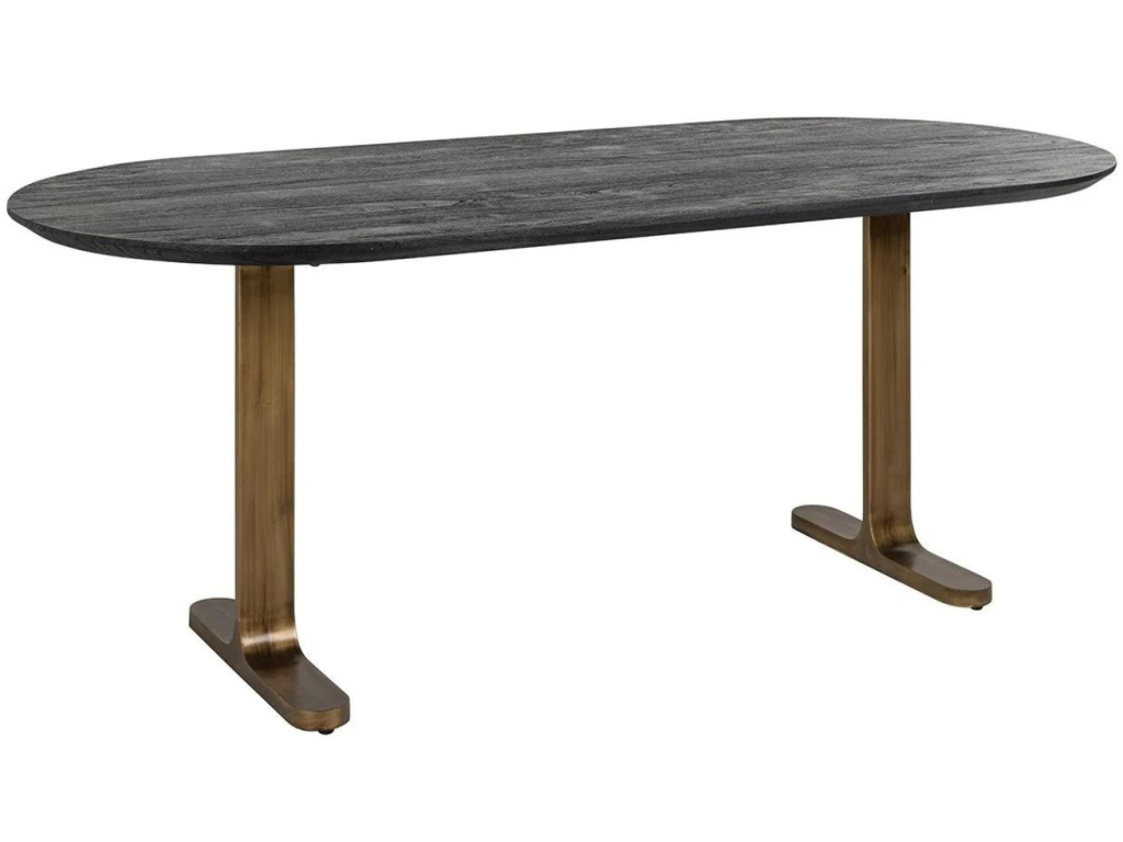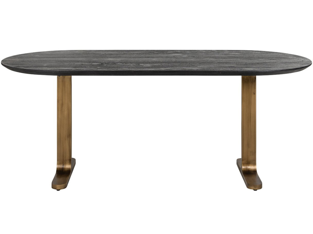 Zažijte stolování v elegantním duchu s jídelním stolem Revelin od značky Richmond. Tento stůl, podepřený elegantní železnou podnoží s povrchovou úpravou z tmavé antické mosazi, vyzařuje sílu a rafinovanost. Oválná deska, vyrobená z černého mangového dřeva, nápadně předvádí svou přirozenou dřevitou texturu a dodá vašemu jídelnímu koutu nádech robustnosti a přirozenosti. Díky své velkorysé velikosti desky o šířce 200 cm je ideální pro velké večeře s širší rodinou či přáteli. Revelin se stane středobodem nezapomenutelných setkání a kulinářských okamžiků! Je dostupný v několika velikostech.