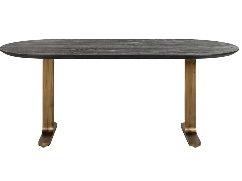 Zažijte stolování v elegantním duchu s jídelním stolem Revelin od značky Richmond. Tento stůl, podepřený elegantní železnou podnoží s povrchovou úpravou z tmavé antické mosazi, vyzařuje sílu a rafinovanost. Oválná deska, vyrobená z černého mangového dřeva, nápadně předvádí svou přirozenou dřevitou texturu a dodá vašemu jídelnímu koutu nádech robustnosti a přirozenosti. Díky své velkorysé velikosti desky o šířce 235 cm je ideální pro velké večeře s širší rodinou či přáteli. Revelin se stane středobodem nezapomenutelných setkání a kulinářských okamžiků! Je dostupný v několika velikostech.