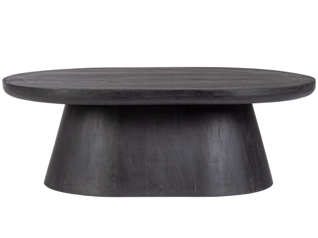 Stylový robustní konferenční stolek Fuji od italské značky Bizzotto se stane ozdobou vašeho obývacího pokoje. Oválná deska i kuželová podnož stolku jsou vyrobeny z kvalitního masivního mangového dřeva natřeného černým nitrocelulózovým lakem. Konferenční stolek perfektně doplní váš gauč a bude skvělou volbou zvláště do minimalistických prostorů. Vyberte si jednu ze dvou velikostí nebo vytvořte zajímavou kombinaci ladících stolků Fuji.