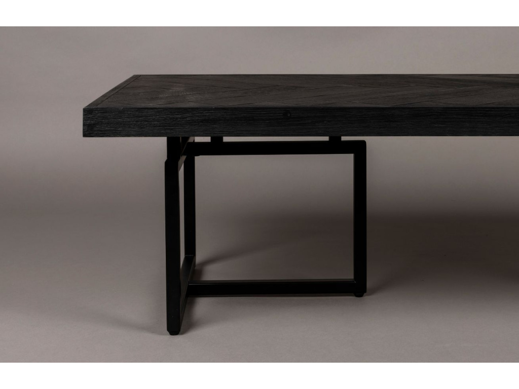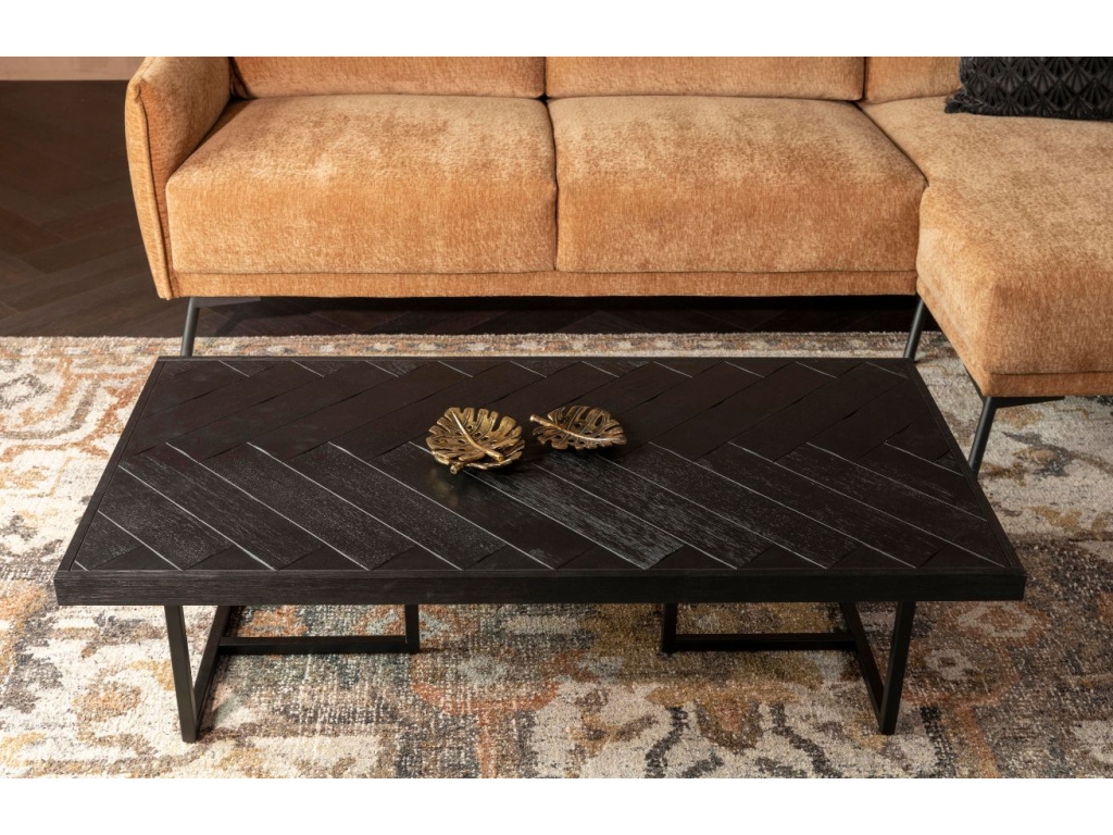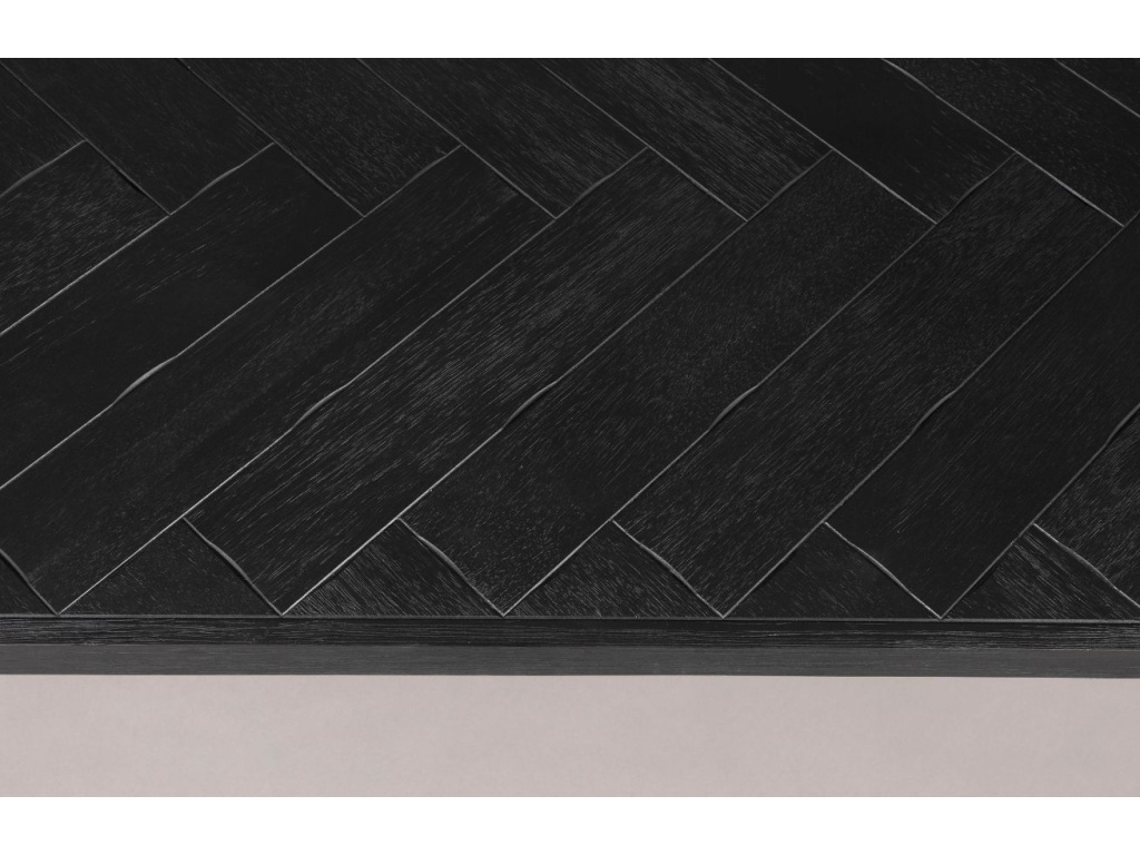 Černý konferenční stolek Class je tvořen dřevěnou deskou a zajímavě tvarovanou kovovou podnoží. Je navržen ve stylu vintage a stane se nepřehlédnutelnou součástí interiéru. Vrchní část stolu se vzorem rybích kostí je vyrobena z polotvrdé dřevovláknité desky, kterou z obou stran pokrývají tenké desky z akátové dýhy. Podnož je zakončena gumovými podložkami. Stolek můžete skvěle doladit s dalšími kousky ze série DUTCHBONE CLASS.