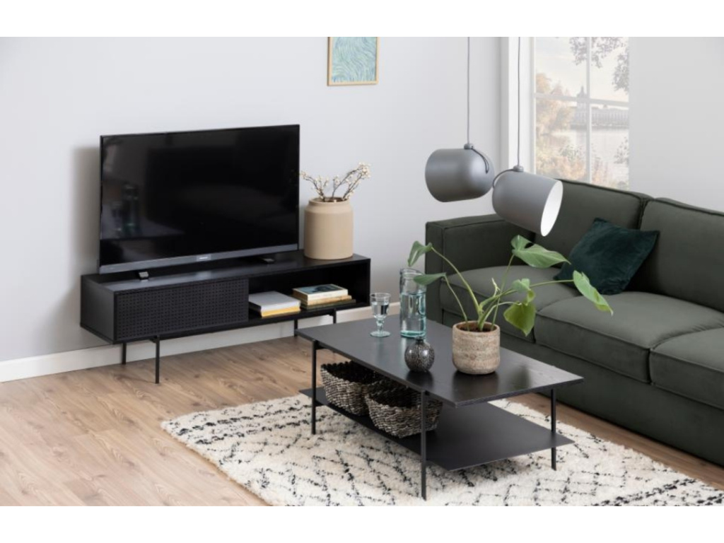 Černý konferenční stolek Toren se stane nejen designovým ale i praktickým prvkem vašeho interiéru. Deska stolku z melaminu v dekoru černého dubu je doplněna o praktickou černou kovovou polici a podnož. Stolek Toren můžete v interiéru kombinovat s dalším nábytkem ze stejnojmenné série.